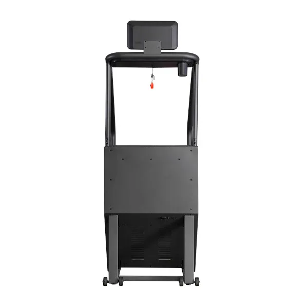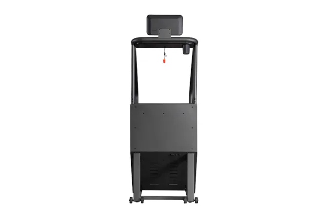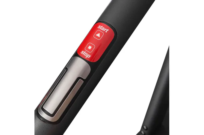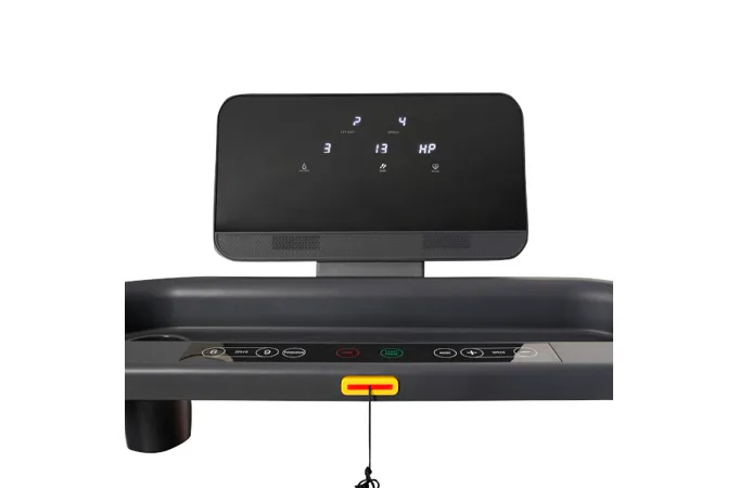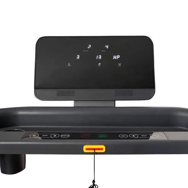 Trenažér je vybavený prehľadným LED displejom, ktorý počas tréningu zobrazuje všetky údaje prehľadne a čitateľne. Pod displejom nájdeme 2 reproduktory, ktoré reprodukujú hudbu prehrávanú z USB Flash disku alebo z pripojeného linkového vstupu (3,5 mm Jack). Keď sa posunieme o kúsok nižšie, tak tu nájdeme poličku s výkrojom na odloženie fľaše a ovládacie prvky, ktoré sú pre maximálne pohodlie spolu s elektródami na meranie tepu umiestnené aj na rukovätiach. Na ľavej rukoväti nájdeme tlačidlá na spustenie a zastavenie pohybu schodov, zatiaľ čo na ľavej rukoväti sú tlačidlá na reguláciu rýchlosti.