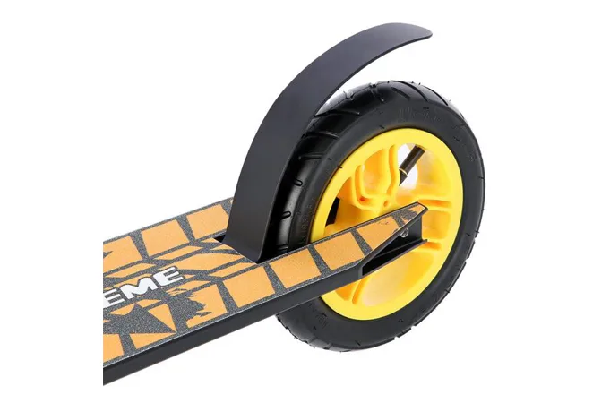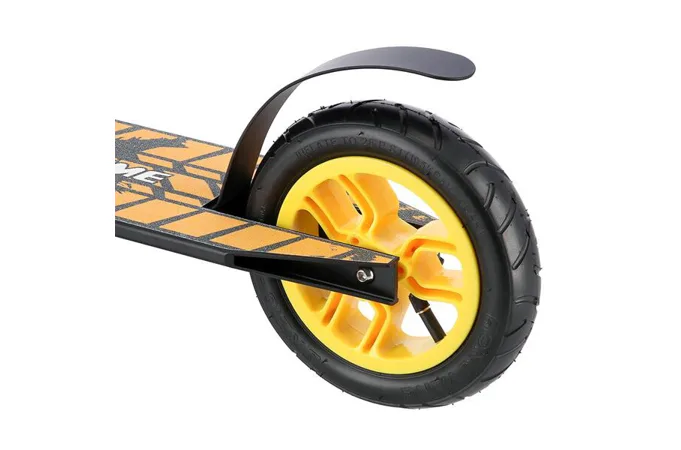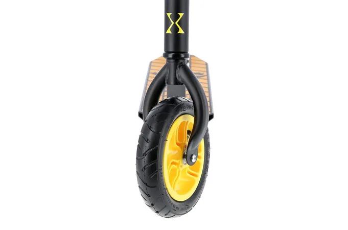 Nylonové kolieska sú osadené ložiskami ABEC 9 a pumpovacou pneumatikou s priemerom 200 mm. Model HC020 je vybavený prítlačnou brzdou (blatníkom) na zadnom kolese. Pevná konštrukcia predurčuje kolobežku na vykonávanie freestyle trikov, pri ktorých využijete aj možnosť pretáčania riadidiel o 360 °.