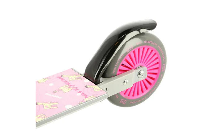 Riadidlá majú šírku 33 centimetrov a rukoväte sú opatrené gumovými gripmi, táto kombinácia zaručuje pohodlný úchyt a istotu v riadení aj pri vysokých rýchlostiach, ktorých HD112 dosahuje vďaka polyuretánovým kolieskam s priemerom 125 mm a ložiskám ABEC 5. Zadné koliesko je opatrené , alebo Vás zastihne napríklad dažďová prehánka, blatník zároveň slúži ako nožná brzda, tá umožňuje rýchle zastavenie a tým zvyšuje bezpečnosť kolobežky.
