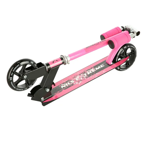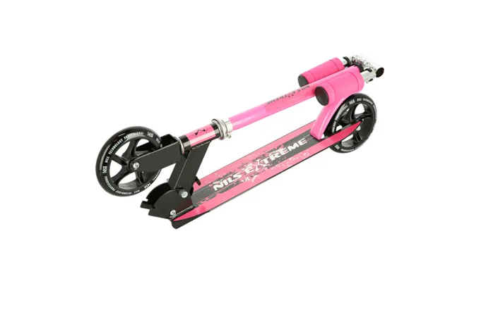 Skladacia kolobežka NILS Extreme HD114 je určená pre deti, dorast. HD114 je vyrobená z hliníka, vďaka ktorému je veľmi trvanlivá a ľahká. Nízka hmotnosť a možnosť zloženia má tiež vplyv na komfort prenášania, pokiaľ s kolobežkou cestujete autobusom, električkou, metrom alebo pokiaľ si ju vezmete so sebou napríklad na dovolenku.