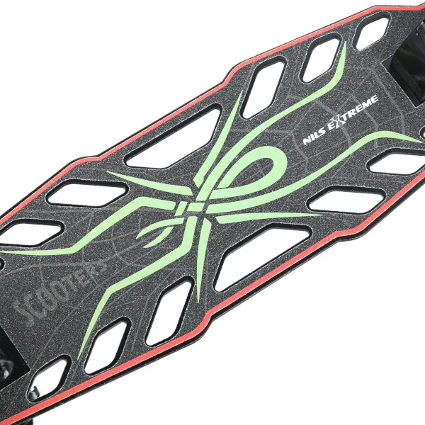 Skladacia kolobežka NILS Extreme HD207 je určená pre deti, dorast. HD207 je vyrobená z hliníka, vďaka ktorému je veľmi trvanlivá a ľahká. Nízka hmotnosť a možnosť zloženia má tiež vplyv na komfort prenášania, pokiaľ s kolobežkou cestujete autobusom, električkou, metrom alebo pokiaľ si ju vezmete so sebou napríklad na dovolenku.