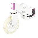 Ďalšími výraznými prvkami sú protišmyková nášľapná plocha, rukoväte z penového materiálu a zadná prítlačná brzda. Kladieme dôraz predovšetkým na atraktívny vzhľad a kvalitné prevedenie, vďaka ktorému máte istotu, že kupujete kvalitnú kolobežku, ktorá poteší a zároveň ochráni.