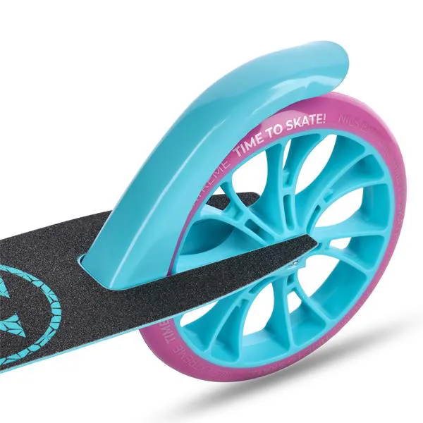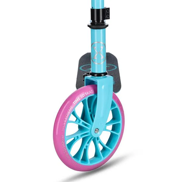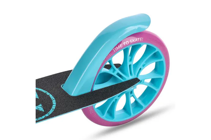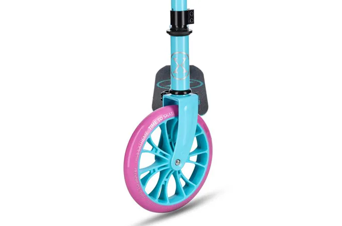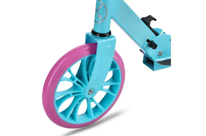 Veľké kolesá s priemerom 200 mm majú polypropylénový stred potiahnutý polyuretánom zaisťujú dobré tlmenie a priľnavosť na rôznych povrchoch – od asfaltu po dláždené chodníky. Ložiská ABEC-7 minimalizujú valivý odpor, čo prispieva k plynulej jazde a väčšiemu komfortu.