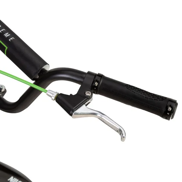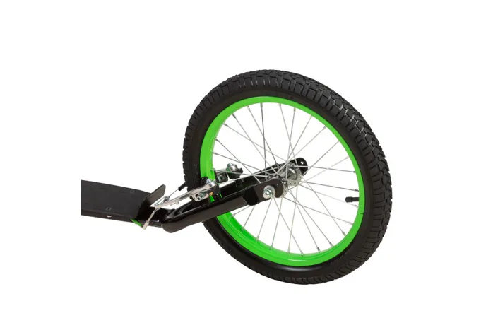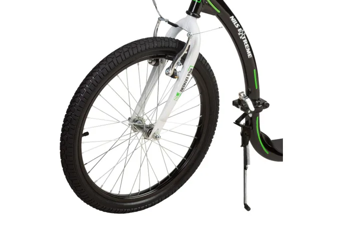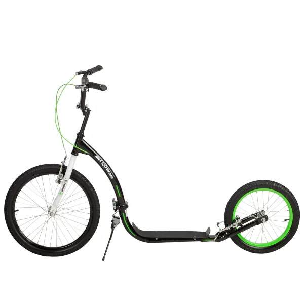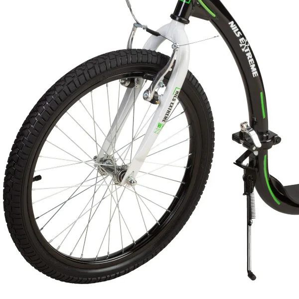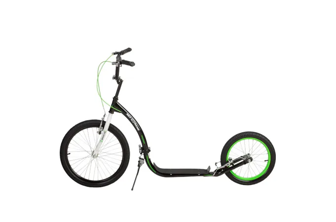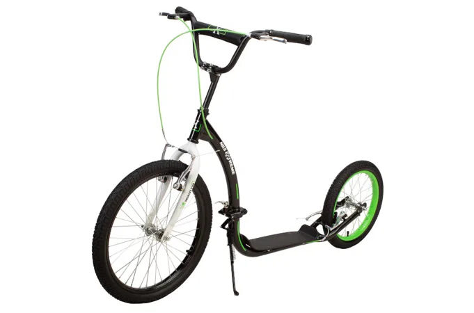 Vďaka nosnosti 100 kg si ju môže užívať celá rodina. Rám je vyrobený z kvalitnej ocele, na ráfiky sú obuté pneumatiky s dušou a pre maximálnu bezpečnosť je kolobežka vybavená oceľovými brzdami typu "V-brake" a most riadidiel je opatrený penovým návlekom. Tieto vlastnosti kolobežku priamo predurčujú na použitie na asfalte, dlažbe, ale aj na štrku a nespevnených chodníkoch.
