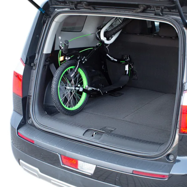 Veľkou prednosťou modelu WH227F je skladací mechanizmus na „krku“ kolobežky. Po uvoľnení páčky rýchloupináku konštrukciu jednoducho preklopíte, pomocou pribaleného remienka zafixujete zadné koleso k riadidlám a kolobežku si môžete vziať napríklad do vlaku alebo uložiť do kufra svojho vozidla.