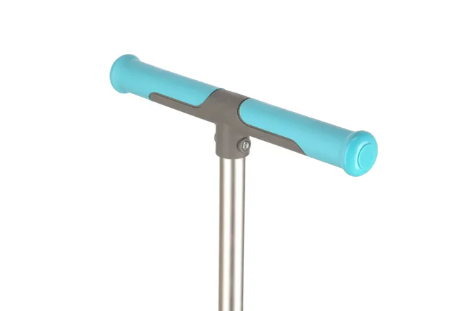 Teleskopické riadidlá sú výškovo nastaviteľné do 3 polôh (72,5 - 76,5 - 81 cm od zeme). Zmena nastavenia výšky sa vykonáva uvoľnením objímky, stlačením poistného čapu a vysunutím, alebo zasunutím vnútornej tyče riadidiel. Pre úsporu miesta je možné riadidlá demontovať - na to je potrebné stlačiť tlačidlo, ktoré je prístupné zo spodnej strany kolobežky. Tento systém sklápania je maximálne bezpečný a nemôže dôjsť k nechcenému sklopeniu počas jazdy. Gripy na riadidlách sú vyrobené z kombinácie plastu a gumy pre pevný úchop, šírka riadidiel je 32 centimetrov.