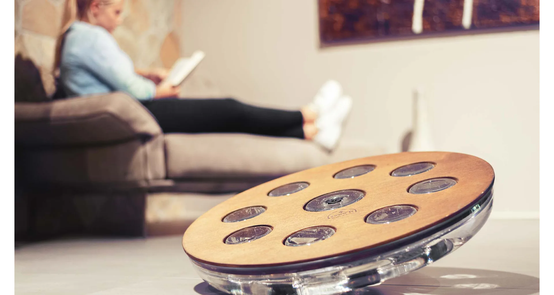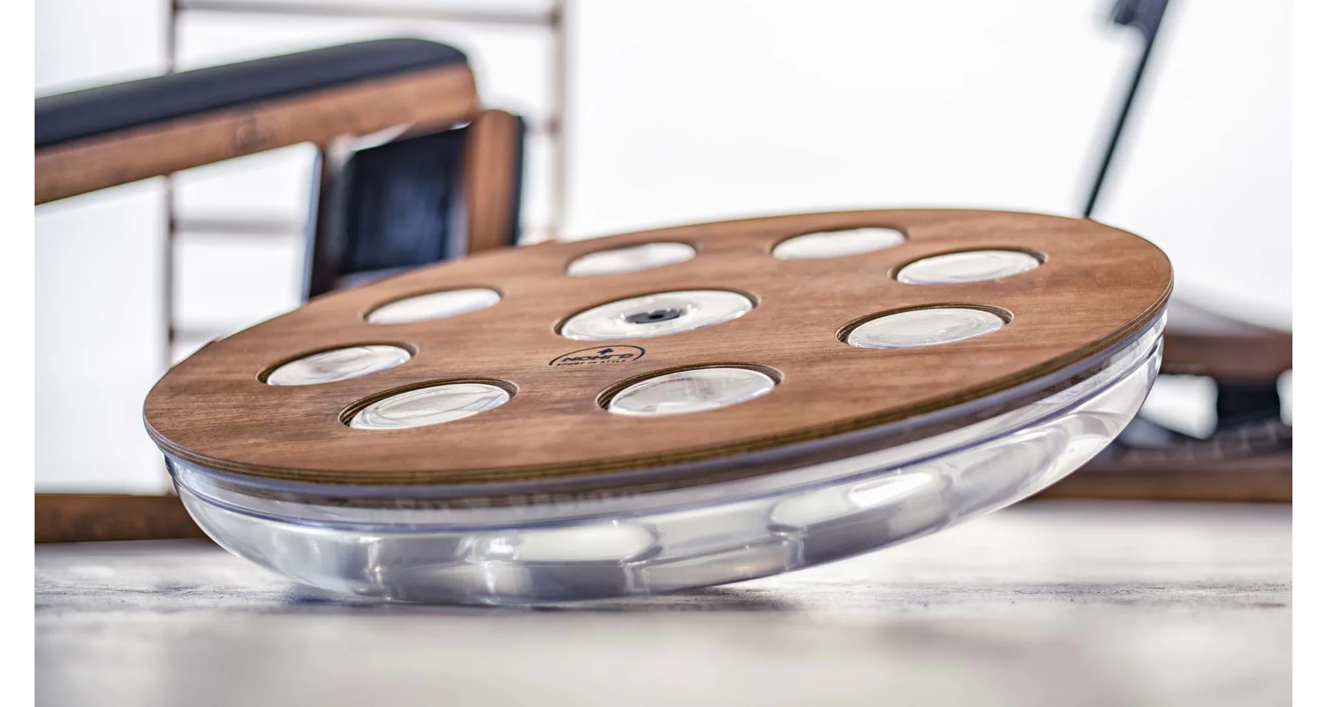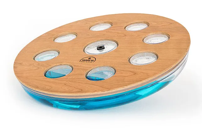 Eau-Me Board je balanční deska s patentovanou technologií od luxusní značky NOHrD. Nášlapná deska je vyrobena z vysoce kvalitního dřeva různých druhů i barev a je spojena s plastovou základnou, která je naplněna vodou.