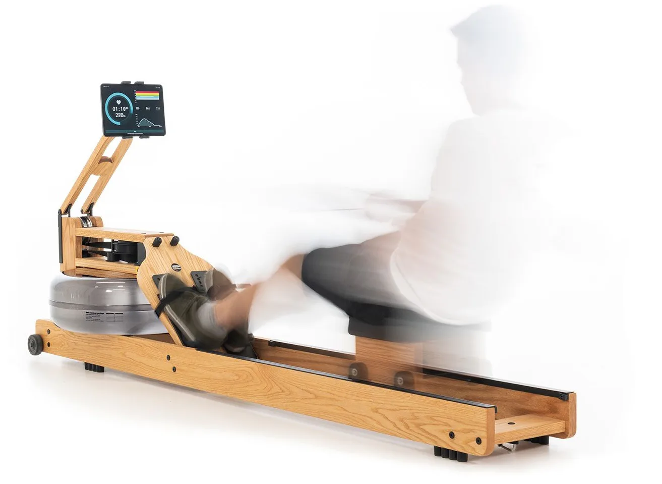 Exkluzivní veslovací trenažér NOHrD Performance Ergometer je vyroben z masivního dřeva, s nadčasovým designem a důrazem na detail. Srdcem stroje je nádrž na vodu s ergonomicky tvarovanou vodní lopatkou vytvářející rovnoměrný, hladký a příjemný odpor.
