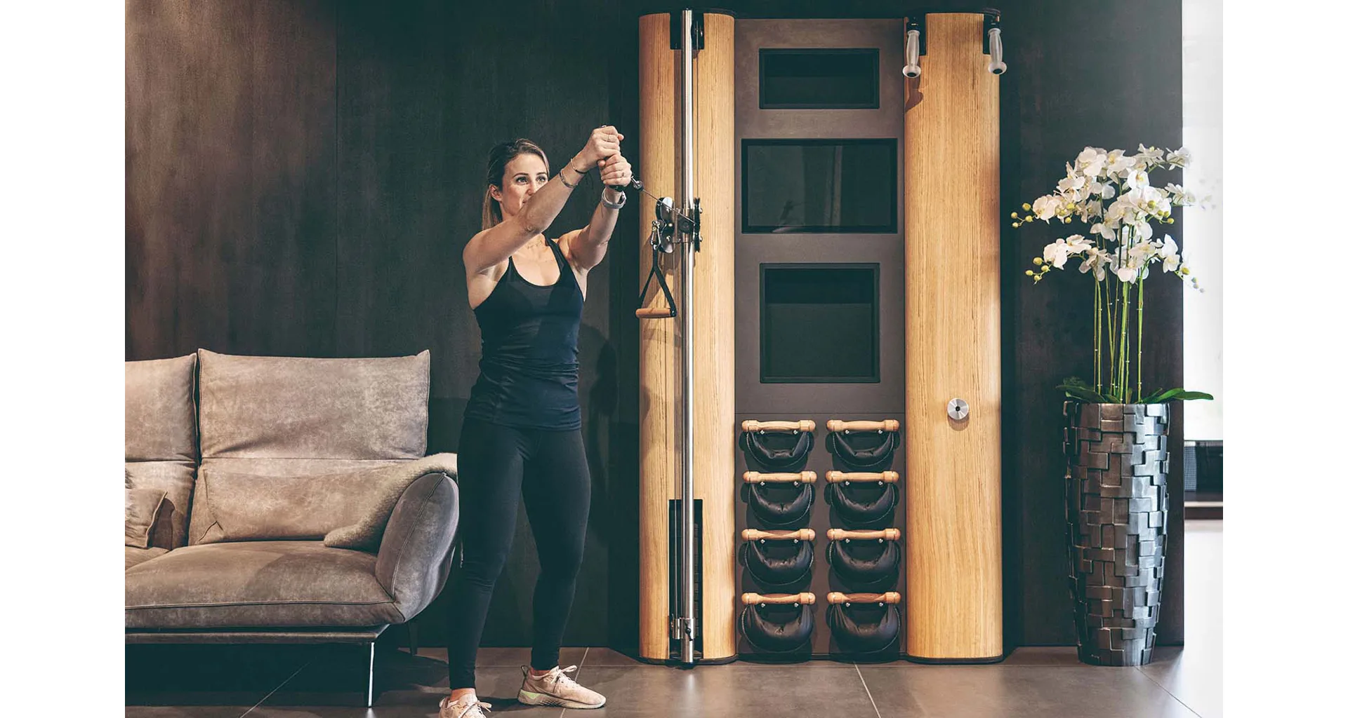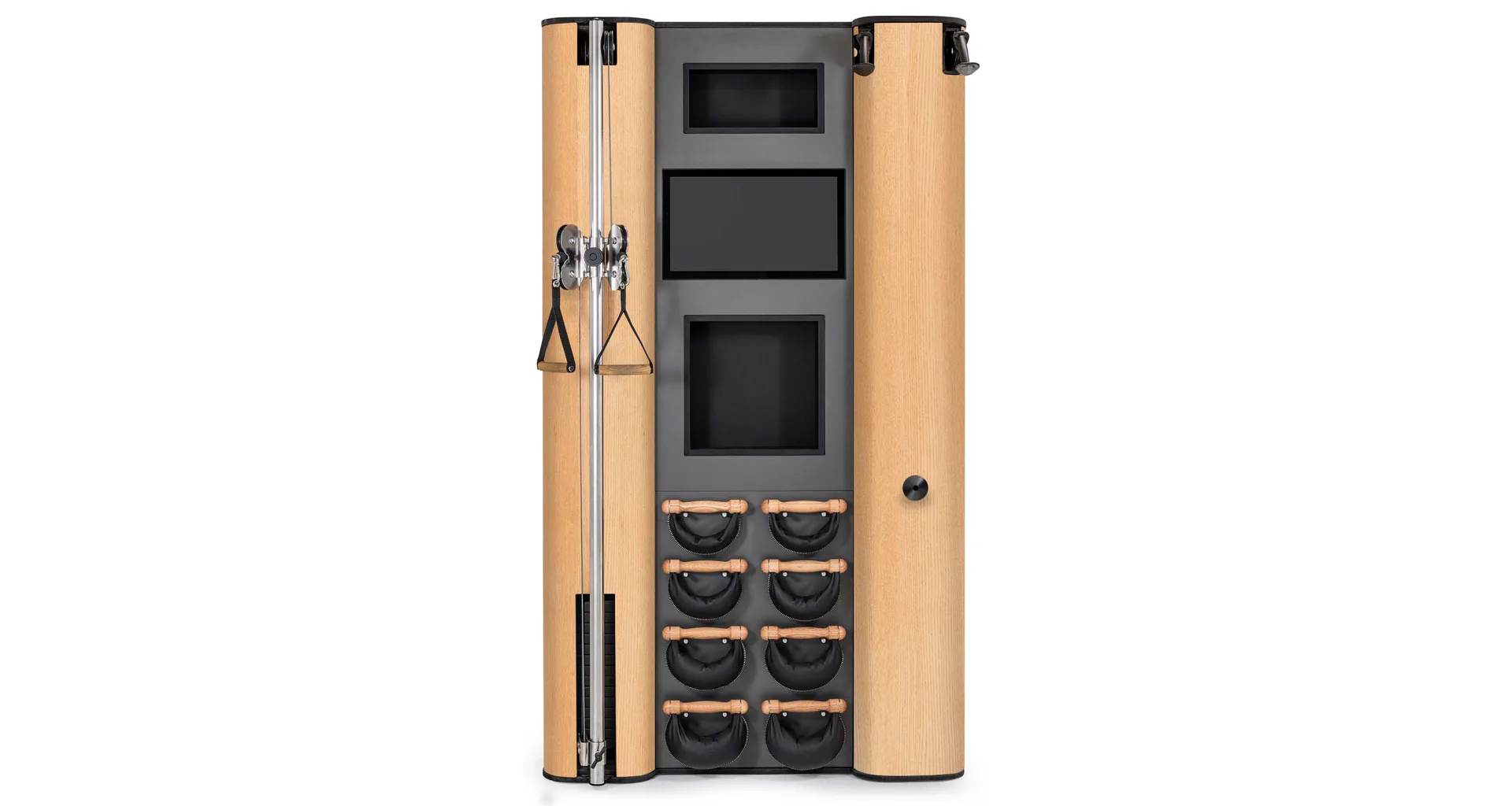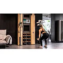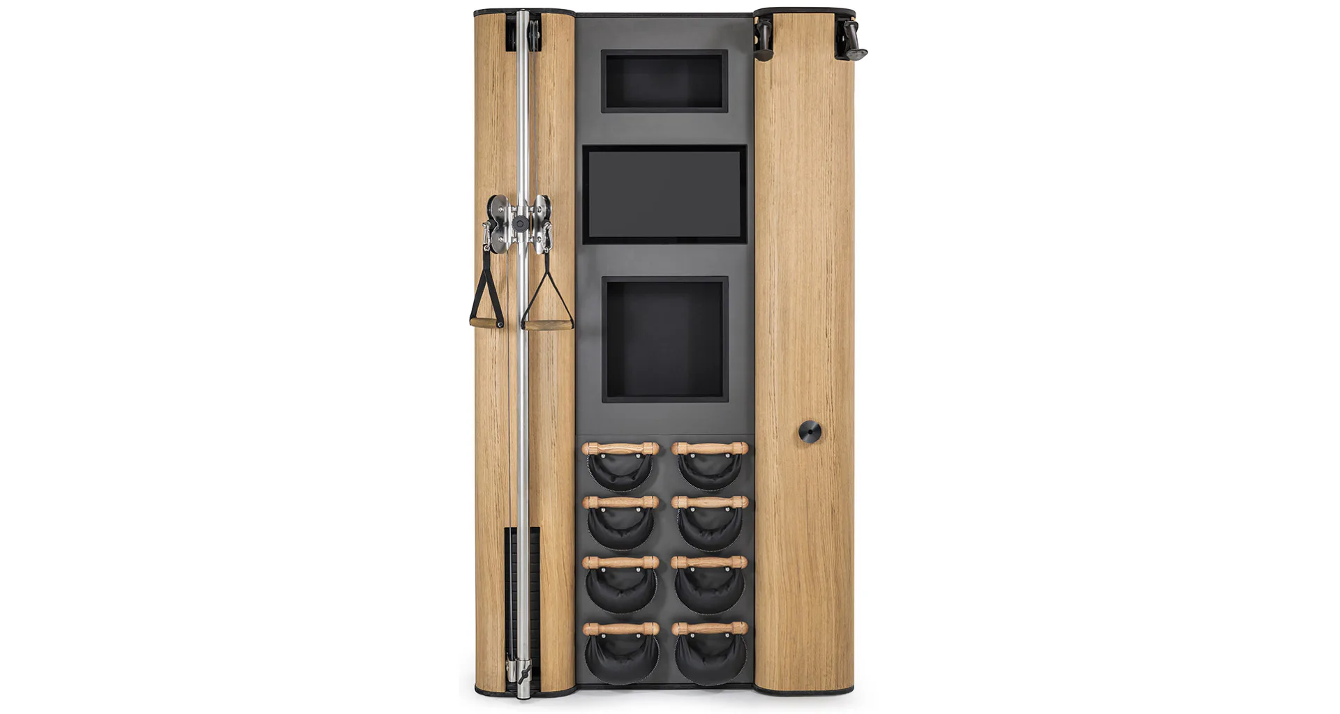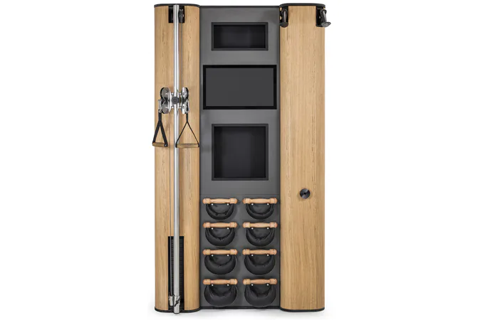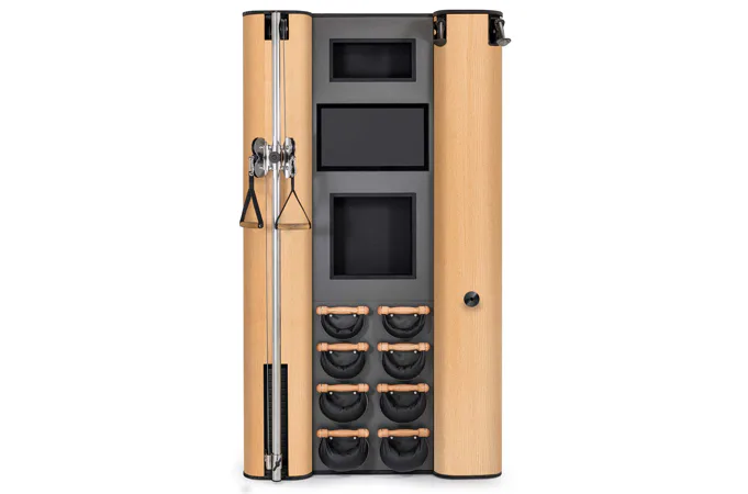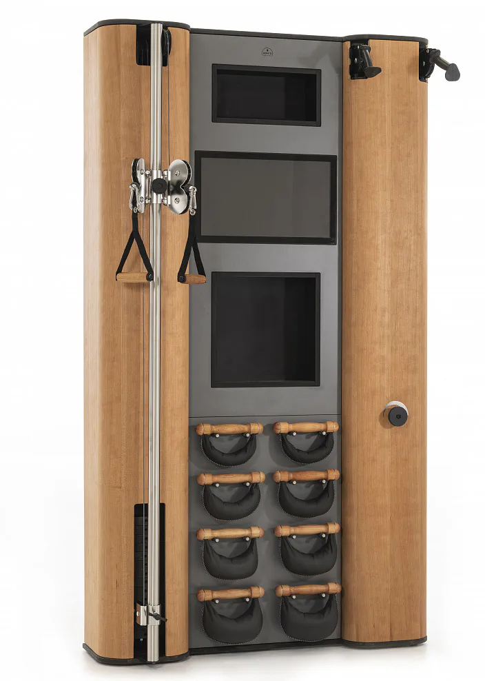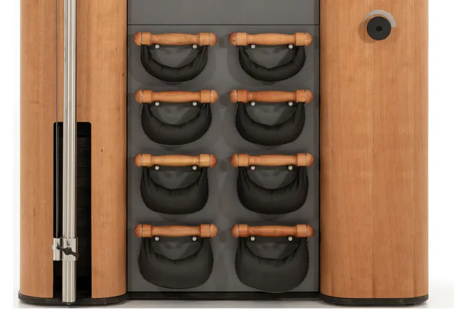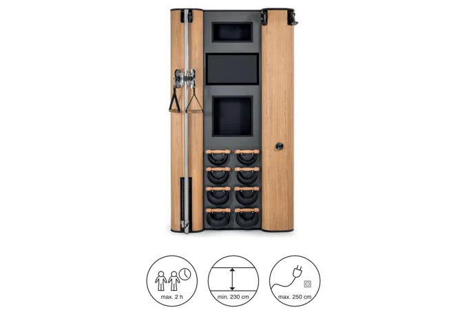 Exkluzivní multifunkční stěna NOHrD Wall Compact se může pochlubit svým moderním a elegantním vzhledem, je vyrobena z masivního dřeva různých druhů a skvěle se hodí do každého interiéru. Stěna poskytuje tréninky celého těla, jak silové tak vytrvalostní. Wall Compact obsahuje výškově nastavitelný kladkový stroj, Ski-erg a čtyři páry ručních závaží SwingBells. Wall Compact mohou používat i dva lidé najednou.Stěna je ideální jak do domácích, ale i plně komerčních podmínek!