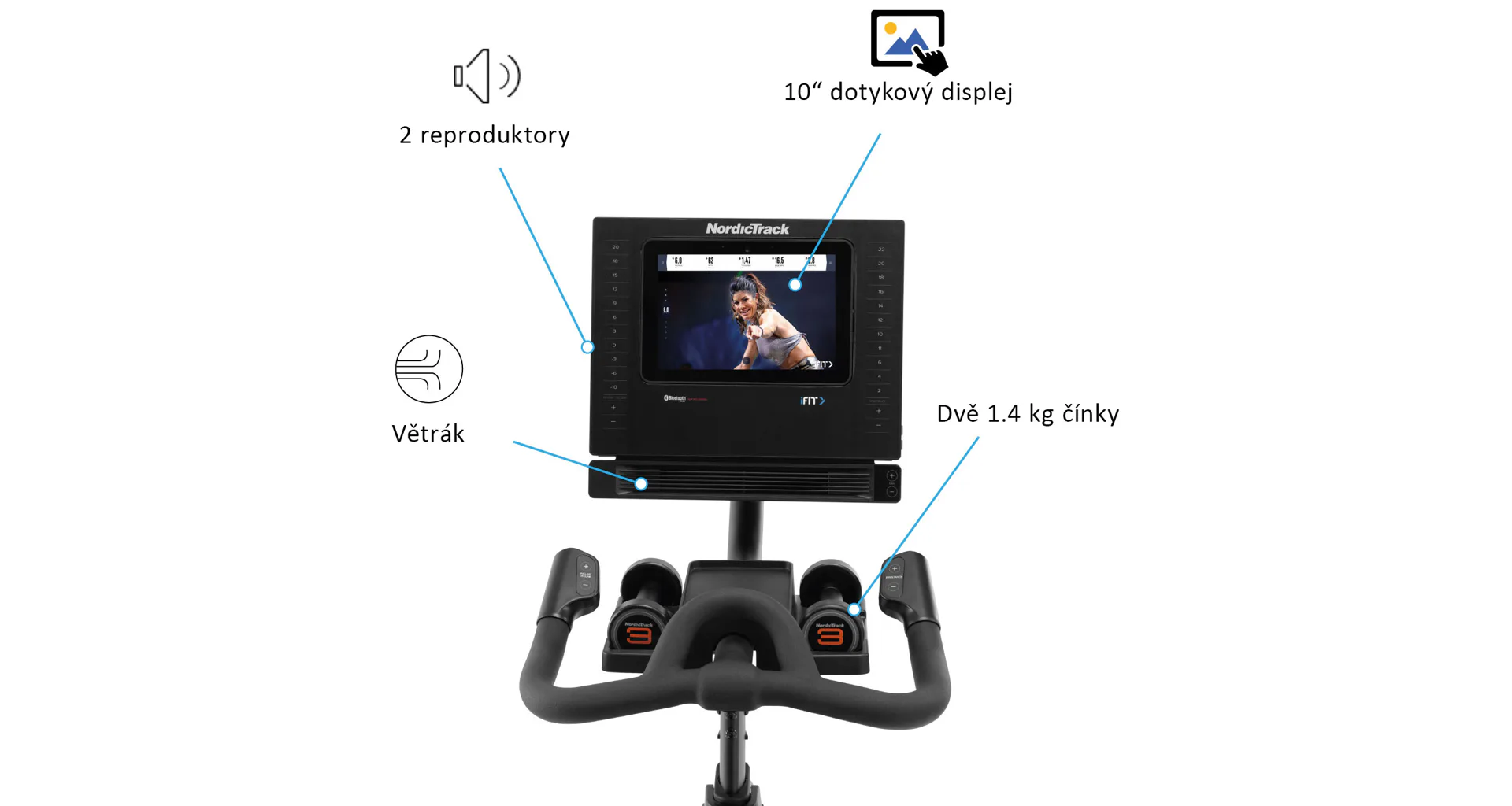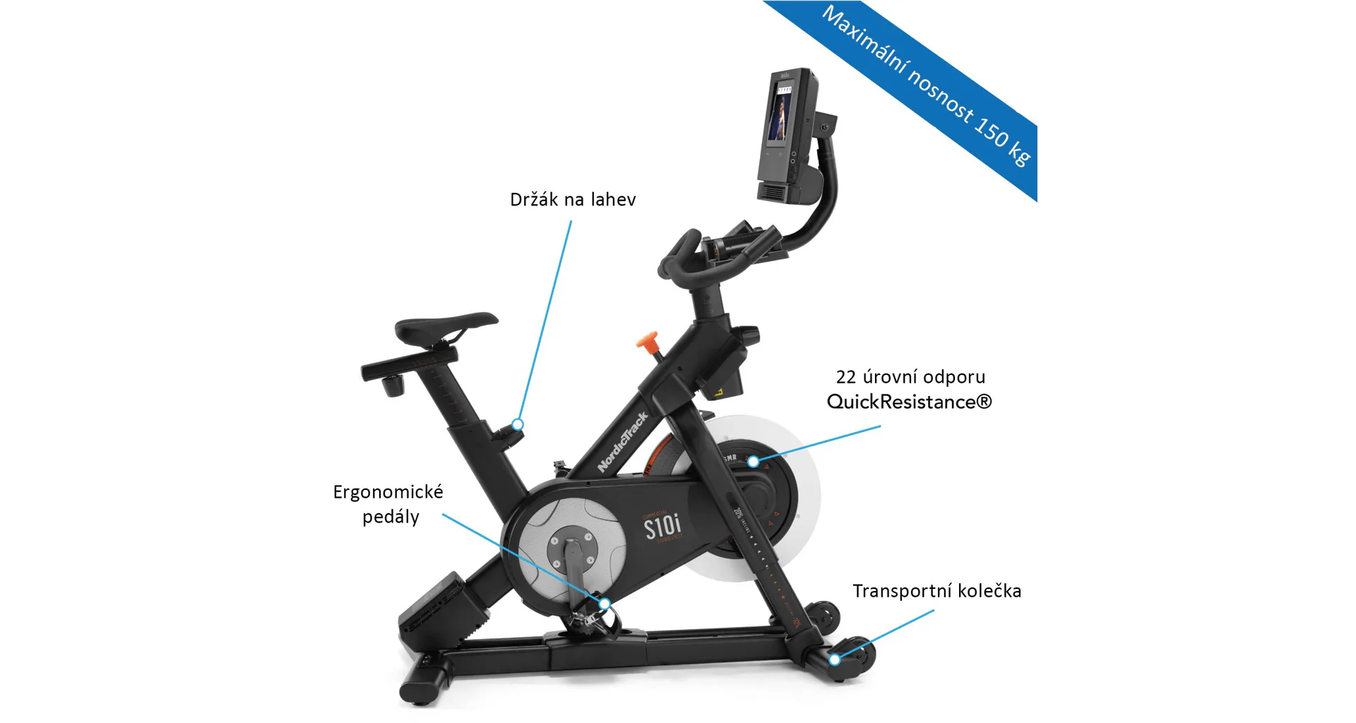 Odpor NordicTrack Studio 10" je řízen elektronicky v 24 stupních magnetickým brzdným systémem a uspokojí každého začínajícího i sportovní cvičence. Šlapací střed je osazen průmyslovými ložisky.