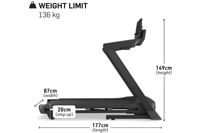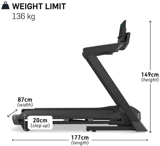 Tento bežecký pás je kompaktný a navrhnutý tak, aby sa zmestil do väčšiny obytných priestorov.