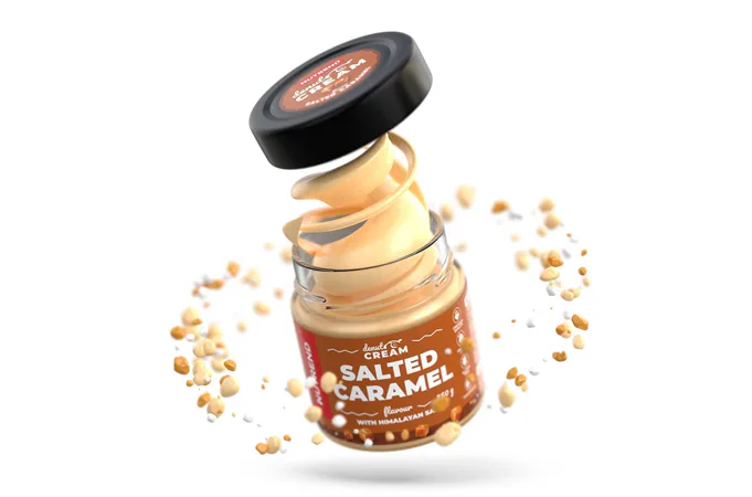 Zloženie: jemný arašidový krém s karamelovou čokoládou a himalájskou soľou: arašidy 65%, karamelová čokoláda 30% (kakaové maslo, cukor, sušené mlieko, karamelizovaný cukor, emulgátor sójový lecitín, aróma, soľ), kokosový cukor, himalájska soľ 0,5 %. Môže obsahovať stopy orechov.