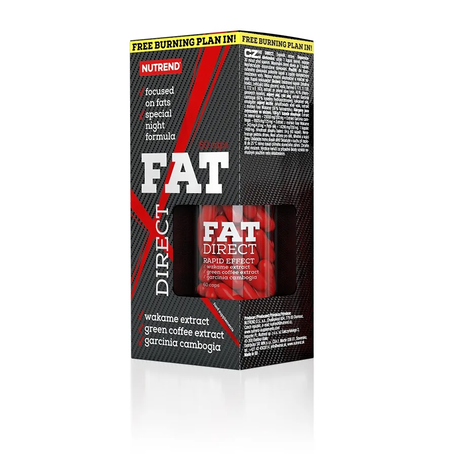 Je jedinečný nielen svojím zložením, ale aj dobou použitia. Fat Direct je totiž prvým nočným spaľovačom od Nutrend. Je špeciálne vyvinutý na odbúravanie tukov v spánku. Produkt neobsahuje povzbudzujúce látky a je určený k večernému použitiu - stačí 1 kapsula 30 minút pred spánkom.