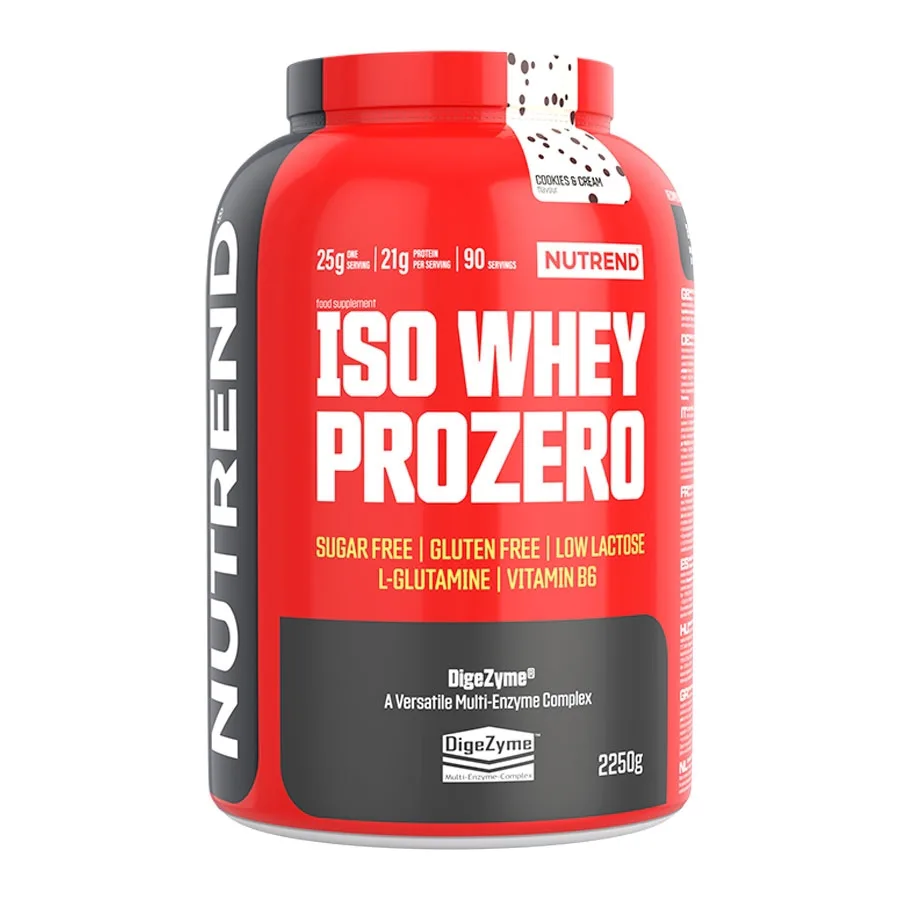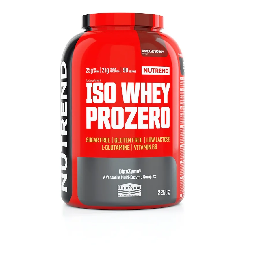 NUTREND Iso Whey PROZERO 2250 g je prvotřídní izolát syrovátkové bílkoviny představuje jeden z nejlepších zdrojů esenciálních aminokyselin, s vysokým obsahem přirozeně se vyskytujících BCAA. S nízkým obsahem laktózy, bez cukru a bez lepku. Ideální pro doplnění bílkovin pro kvalitní obnovu svalstva, zároveň velmi vhodný při nízkosacharidové dietě.