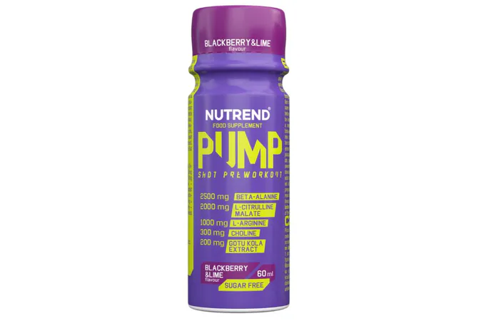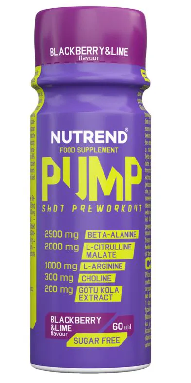 Bezkofeínový preworkout v praktickej forme jednorazového shotu. NUTREND Pump Shot je ideálny na podporu funkčných tréningov, ktoré potrebujete zaradiť napríklad aj vo večerných hodinách. Počas tréningu zabezpečí namáhaným svalom maximálny úžitok z pridaných aminokyselín. Extrakt z Gotu koly zaistí optimálne sústredenie na výkon a navodí pocit celkovej pohody. Vďaka vitamínu B6 a cholínu zároveň podporíte energetický metabolizmus a spaľovanie tukov.