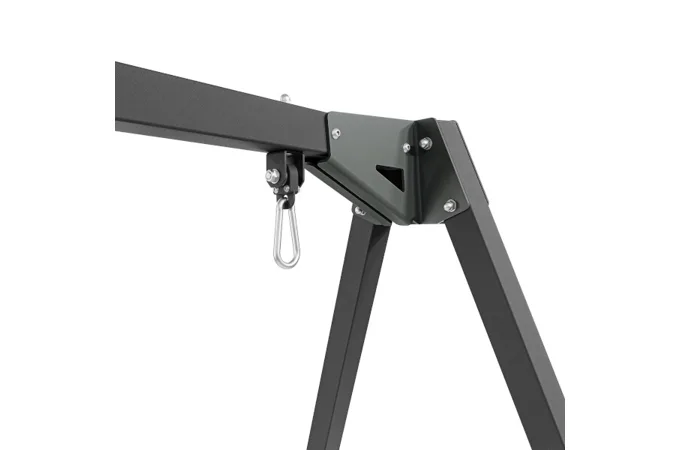 Oceľový rám na záhradné hojdačky MARBO Sport MO-013 ktorý je ideálnym doplnkom pre detské ihrisko na vašej záhrade, alebo chalupe - ľahko, príjemne a so zárukou bezpečnosti pre vašu rodinu. Závesy pre 2 hojdačky a prídavné úchyty pre hojdaciu sieť umožňujú všestranné a flexibilné využitie konštrukcie, a šetria tak miesto na záhrade. Použitie závesov s ložiskami výrazne zvyšuje komfort hojdačky.