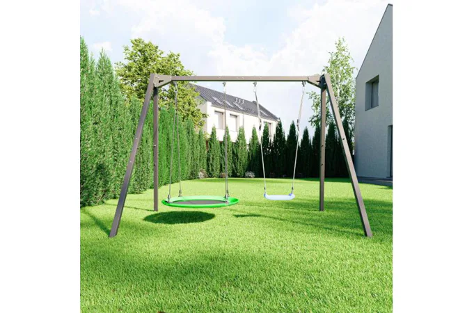 Dvojitá hojdačka MO-013 má 2 páry závesov a tak je možné na rám zavesiť 2 hojdačky, čo vám dáva veľa možností. V závislosti na vašich potrebách a preferenciách môžete nainštalovať akýkoľvek typ hojdačky - tradičné s plastovým sedadlom, drevenú dosku, kruhovú hojdačku, hojdačku s rámom pre najmenšie deti alebo brazílske kreslo pre vlastnú relaxáciu. Je tiež možné využiť väčšie rozstupy pre jednu veľkú hojdačku - do viac ako 3 m širokého rámu sa zmestí napríklad čapí hniezdo alebo hojdacia lavica pre viac osôb. Maximálna nosnosť hojdačky MO-013 je 200 kg, takže konštrukciu môže využívať celá rodina alebo skupina malých hostí naraz.
