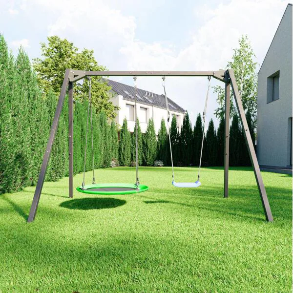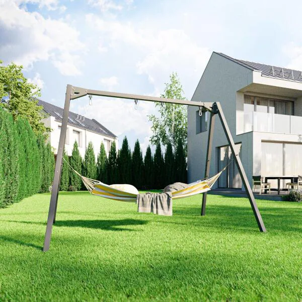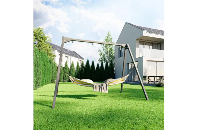 Súčasťou rámov hojdačiek sú aj 2 nástavce, ktoré umožňujú použiť rám na zavesenie hojdacej siete. Vďaka jednoduchej montáži a demontáži závesov môžete hojdačky kedykoľvek vybrať a zavesiť hojdaciu sieť, čím sa detské ihrisko premení na relaxačnú zónu – ideálne napríklad vo chvíli, keď sa deti už chystajú na spánok a vy im chcete večer poskytnúť chvíle odpočinku. Na tam možno tiež zavesiť ďalšie vybavenie ako je boxovacie vrece, gymnastické kruhy, alebo lano na šplh.