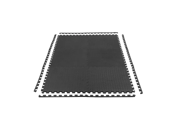 Modulárna, ochranná podložka HMS MP12 PRO chráni podlahu pred poškodením a tiež tlmí zvuky a vibrácie, ktoré vznikajú napríklad počas odhodu činiek a pokladania náradia. Predvolené balenie je určené pod jeden stroj, alebo lavičku. Vďaka „puzzle“ zámkom po obvode každého dielu Vám nič nebráni vo vyskladaní napríklad celej podlahy. Balenie obsahuje 6 štvorcových a 10 zakončovacích dielov pre hladký obvod.