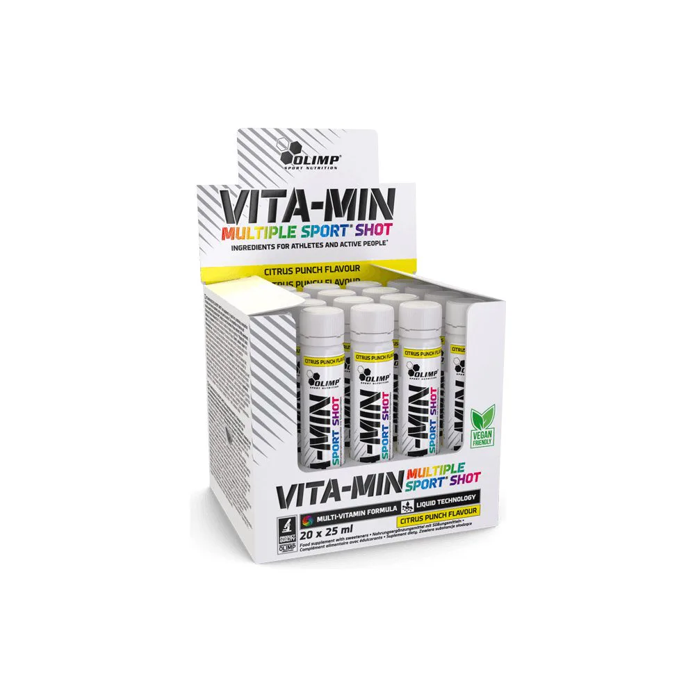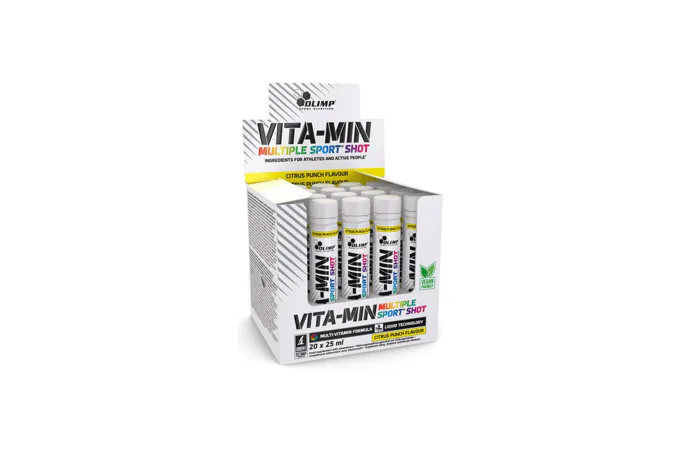 Olimp Vita-Min Multiple Sport Shot - komplexné zloženie vitamínov a minerálov vytvorené pre každého milovníka fyzickej aktivity! Teraz v šikovnej, malej ampulke! Vyberte si doplnok stravy Olimp Sport Nutrition s lahodnou, osviežujúcou citrusovou príchuťou! Teraz môžete ľahko doplniť svoju každodennú stravu o cenné vitamíny a minerály, ktoré hrajú dôležitú úlohu vo vašom tele!