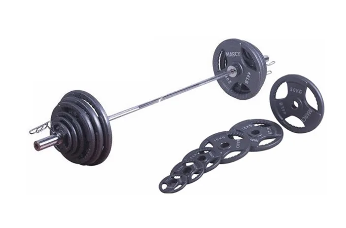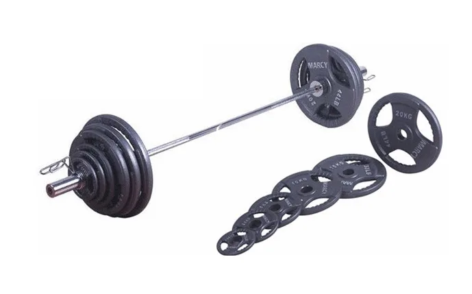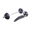 TUNTURI Olympic Weight Set 140 kg je kompletný set skladajúci sa z obojručného olympijského hriadeľa s otočnými koncami o dĺžke 220 cm a zo sady liatinových kotúčov s úchopom 2x20, 2x15, 2x10, 4x5, 4x2.
