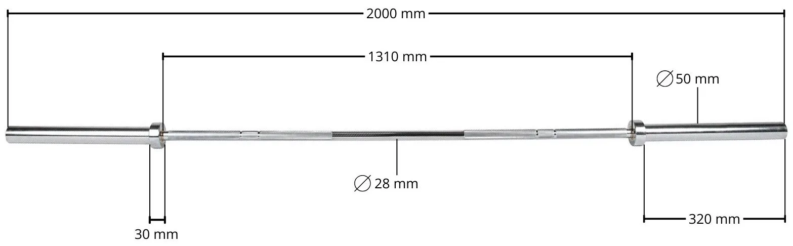 Vďaka priemeru 50 mm je os vhodná pre olympijské kotúče akéhokoľvek typu. To nielen zaručuje stabilitu počas tréningu, ale taktiež vám umožňuje postupne upravovať svoj tréning, ako budete silnieť.
