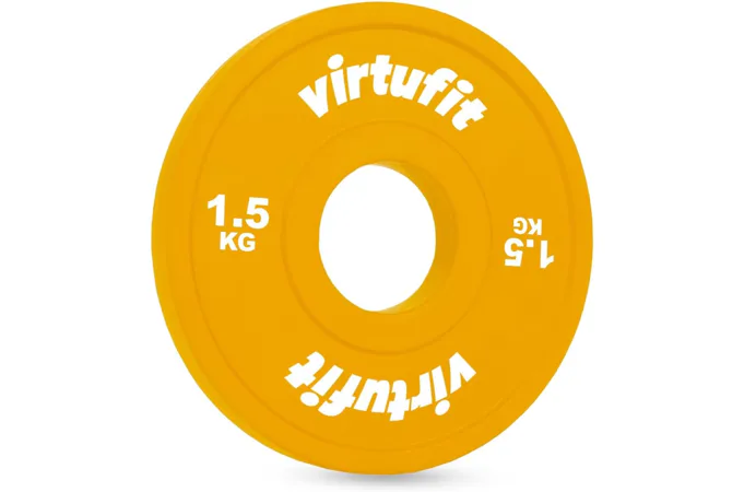 Olympijské kotúče VIRTUFIT Bumper frakčné sú vhodné pre všetky typy činiek s priemerom 50 mm. Kotúče sú celogumenné (z prírodného kaučuku) s vysokou odolnosťou voči opotrebovaniu a zvýšenou trvanlivosťou, čo zaručuje akustický komfort a výnimočnú odolnosť. Sú ideálne na komerčné aj domáce použitie.