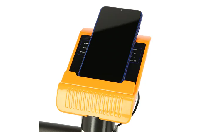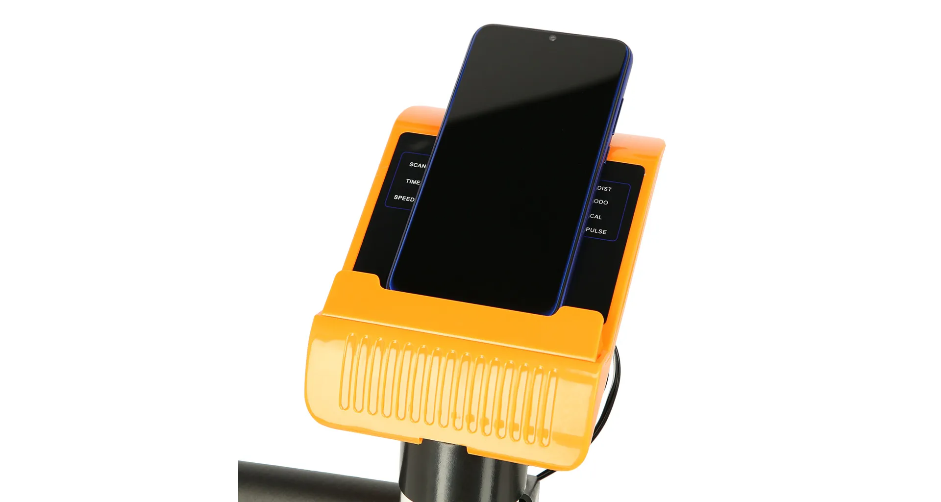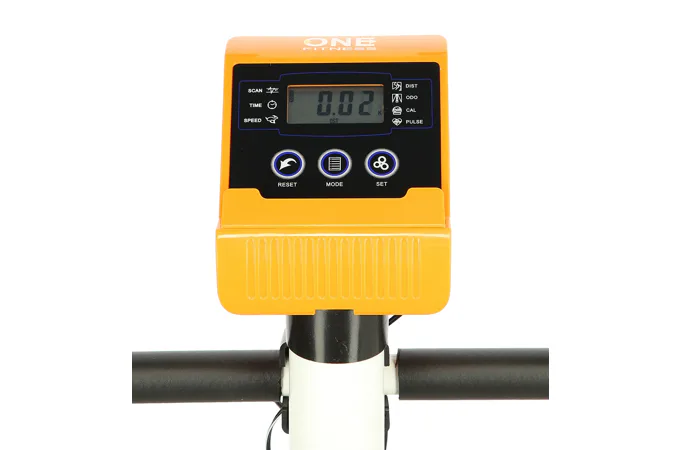 Počítač je vybavený LCD displejom, ktorý zobrazuje všetky potrebné údaje – čas tréningu, rýchlosť, vzdialenosť, spálené kalórie, celková vzdialenosť a tepovú frekvenciu. Pod displejom nájdeme tlačidlá RESET, MODE a SET. Pod tlačidlami sa nachádza stojan pre mobilné zariadenia, na ktorom môžete sledovať napríklad obľúbený seriál.