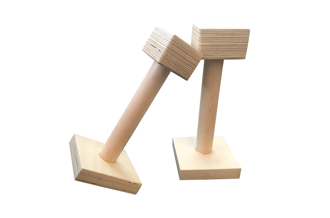 Opěrky na stojky dřevěné jsou příslušenstvím pro dokonalé provádění stojek. Konstrukce je vyrobena z odolného dřeva, což zaručuje dlouholetou životnost. Ergonomická vrchní kostka skvěle padne do ruky slouží k lepšímu nácviku stojek. Tlakem na strany kostky získáváte lepší balanc a zároveň masírujete dlaňové svalstvo. Lze použít i na výdrže těla v pozici L (L-sit), kliky i nebo planky.