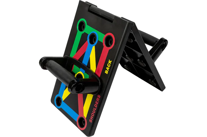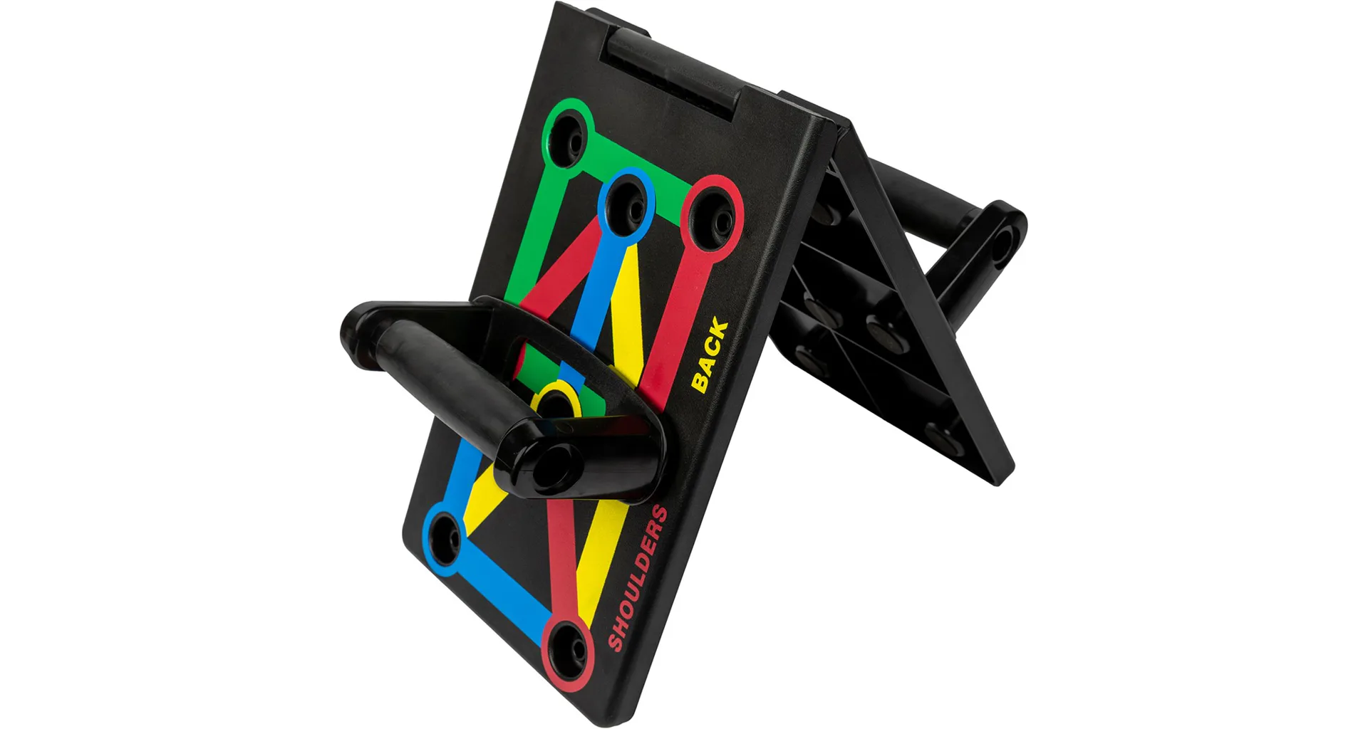 12-in-1 doska je vyrobená z vysoko kvalitných materiálov a je navrhnutá tak, aby nezaberala veľa miesta. Push up board je skladacia s rozmermi 30 x 20 cm a váhou 1,2 kg si ju môžete vziať kamkoľvek.