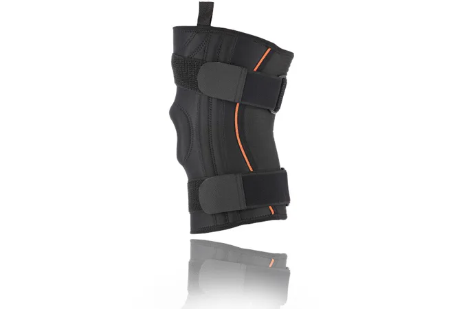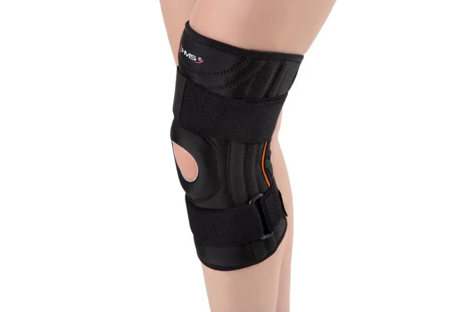 Ortéza HMS KO1655 je vyrobená z kombinácie neoprénu, polyesteru a nylonu v úprave airprene. Výsledný materiál je elastický, roztiahnuteľný do všetkých smerov a pomocou systému suchých zipsov je možné stabilizátor nastaviť presne podľa vašich potrieb. Po stranách sú do konštrukcie všité výstuhy, ktoré zamedzujú pohybu kolena do strán a dozadu. V prednej časti je vrecko na zips, v ktorom sa nachádza silikónový krúžok na stabilizáciu jabĺčka. Krúžok je možné ľahko vybrať a záleží iba na Vás, ako veľa potrebujete koleno stabilizovať.