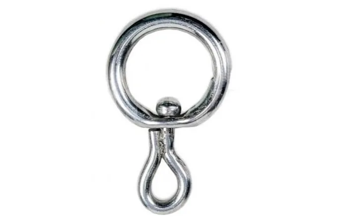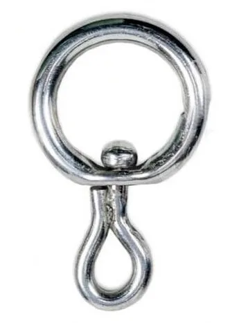Zvárané otočné očko zo silného oceľového drôtu s priemerom 7 mm. Očko sa otáča o 360° a zabraňuje zamotaniu reťazí alebo lán pripevnených ku krúžku.