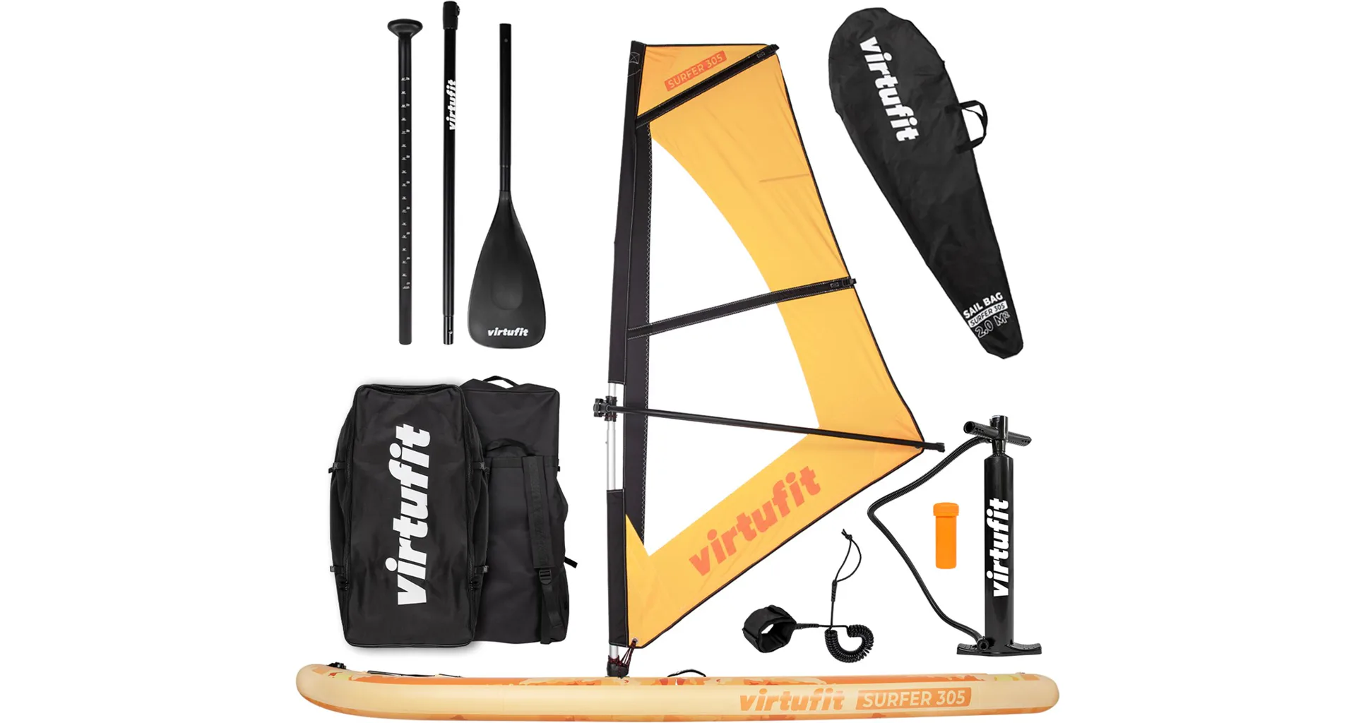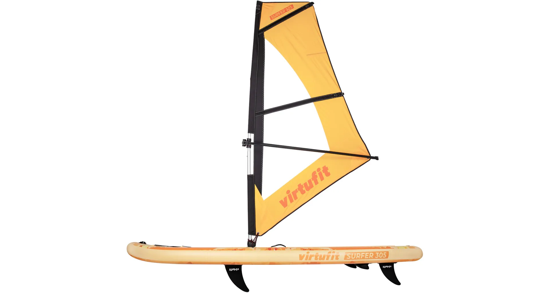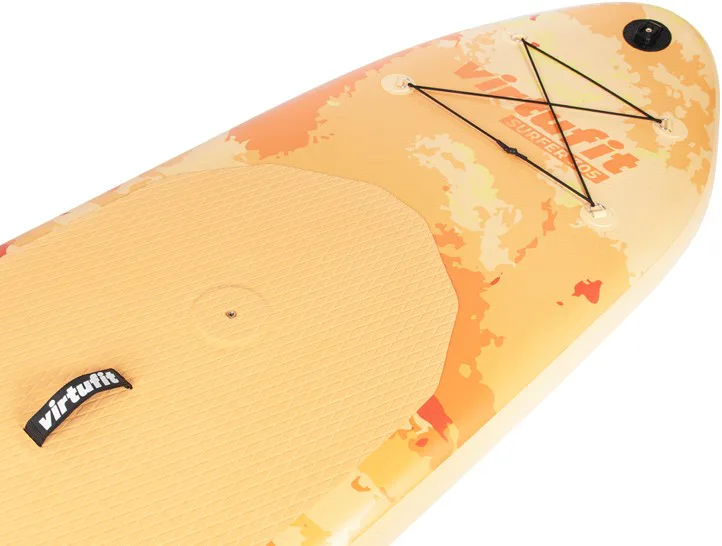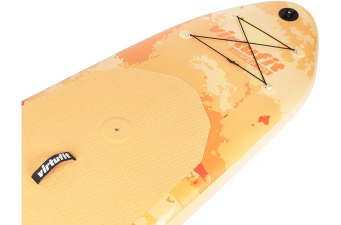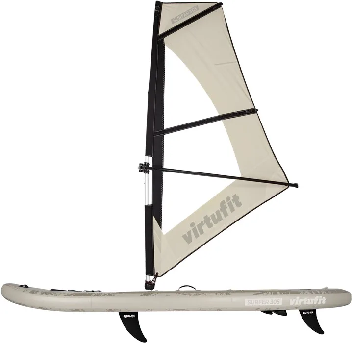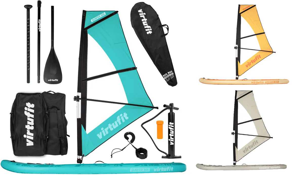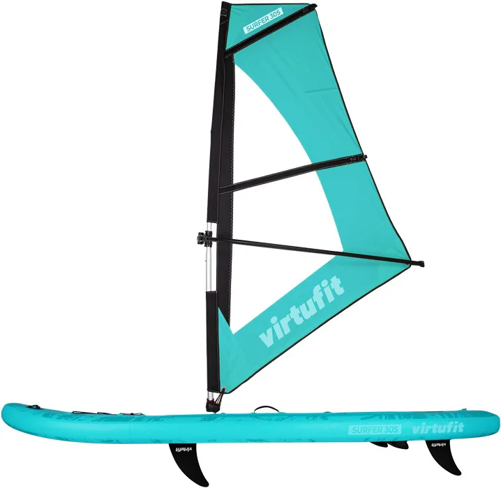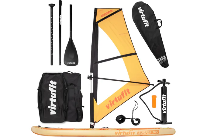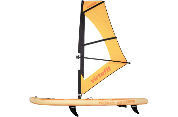 Plávajte sa na jazere v poryvoch vetra s VIRTUFIT Surfer 305 s plachtou. VIRTUFIT Surfer 305 je nafukovací paddleboard s rozmermi 305 x 81 x 15 cm s nosnosťou až 180 kg. Doska je ľahká, flexibilná a poskytuje skvelú zábavu na vodnej hladine. S hrúbkou nie menšou ako 15 cm a dvojito prešitým okrajom, ktorý odolá tlaku až 1 bar (15 psi), máte zaručenú perfektnú rovnováhu. Ovládanie paddleboardu Surfer 305 je naozaj jednoduché a zapojíte pri ňom až 95% všetkých svalov. Jazda na ňom je teda nielen zábava, ale aj skvelá pohybová aktivita.