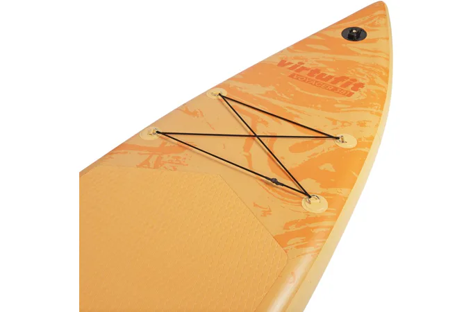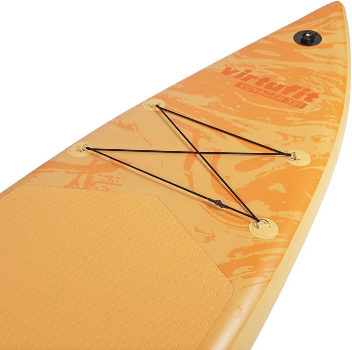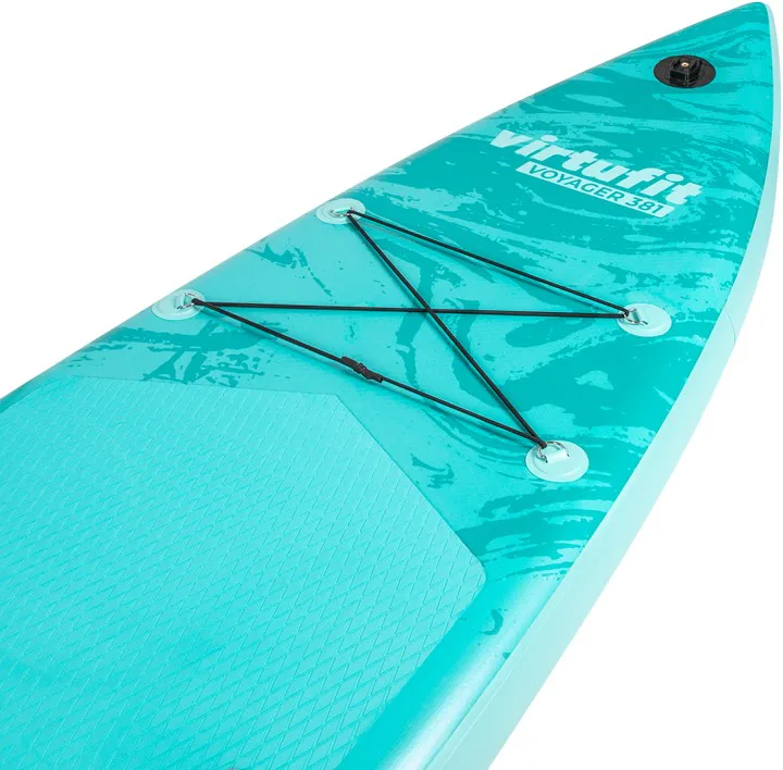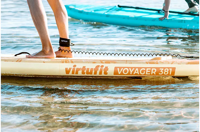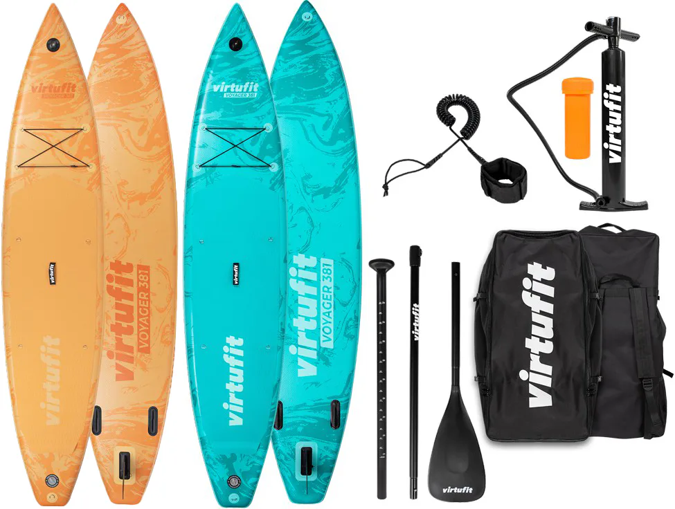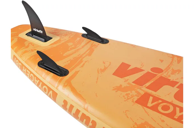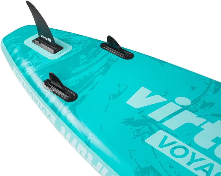 VIRTUFIT Voyager 381 je nafukovací paddleboard s rozmermi 381 x 81 x 15 cm s nosnosťou až 180 kg. Doska je ľahká, flexibilná a špicatý tvar umožňuje paddleboardu ísť rýchlejšie a širšia plocha zvyšuje stabilitu. S hrúbkou nie menšou ako 15 cm a dvojito prešitým okrajom, ktorý odolá tlaku až 1 bar (15 psi), máte zaručenú perfektnú rovnováhu. Ovládanie paddleboardu Voyager 381 je naozaj jednoduché a zapojíte pri ňom až 95% všetkých svalov. Jazda na ňom je teda nielen zábava, ale aj skvelá pohybová aktivita.
