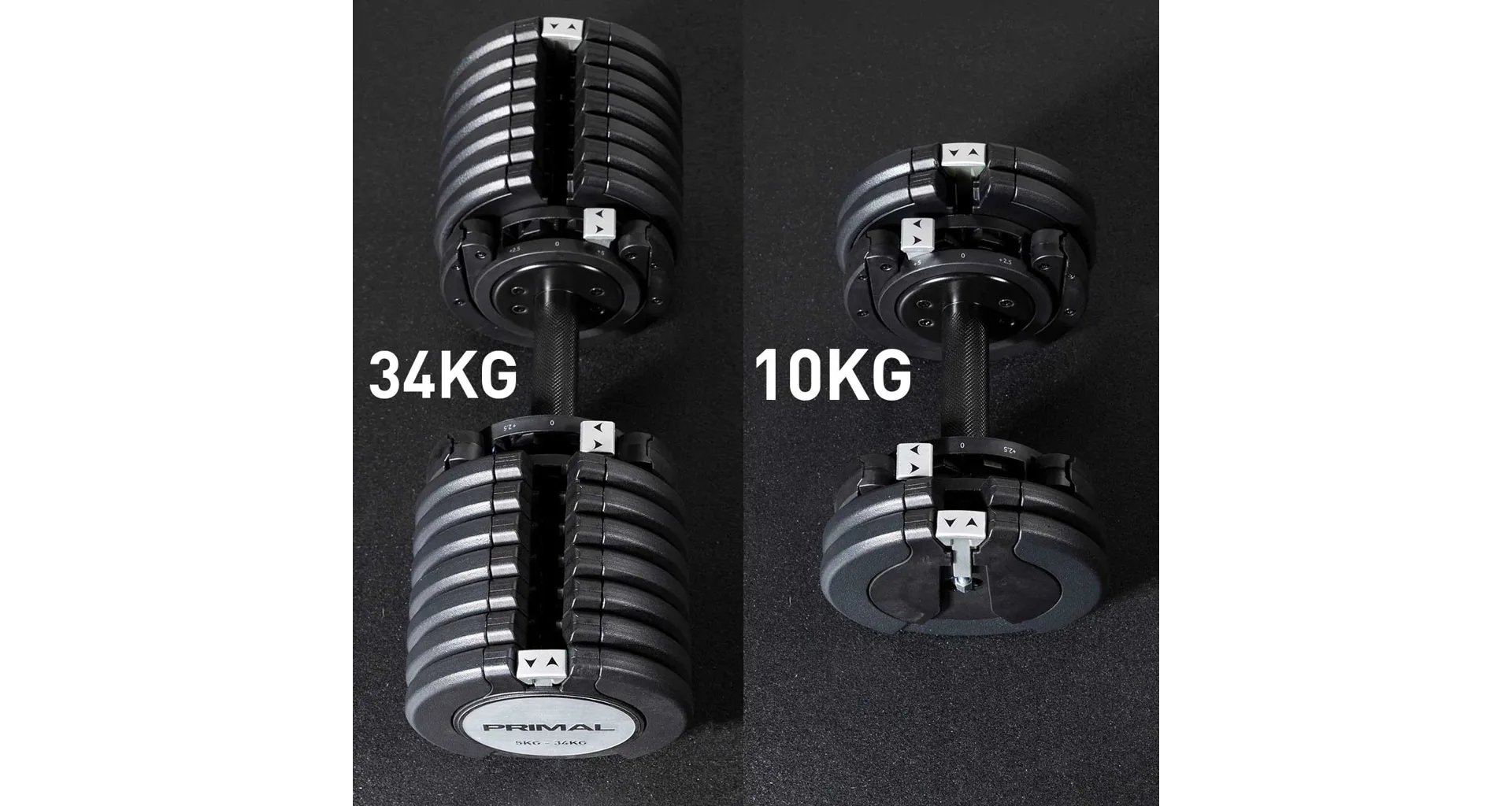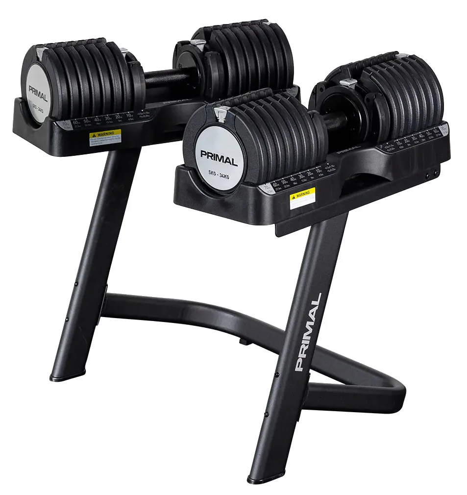 Jednoručné nakladacie činky PRIMAL STRENGTH s praktickým riešením úpravy záťaže. Pomocou praktického nakladacieho/vykladacieho systému nebola zmena hmotnosti nikdy jednoduchšia. Vami požadovanú váhu si môžete veľmi jednoducho zmeniť pomocou posuvníka, ktorým vyberiete požadovanú hmotnosť. Na ďalšie presnejšie zvýšenie alebo zníženie váhy slúži otočný mechanizmus.