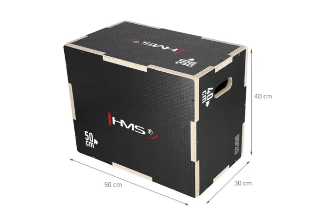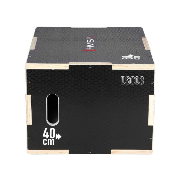 Plyometrický box HMS DSC03 je debna určená pre kondičný tréning. Box je neoddeliteľnou súčasťou každého crossfitového centra, pomôckou profesionálnych športovcov alebo aj atlétov. Vyrobený je z 18 mm preglejky a má rozmery 50 x 40 x 30 cm.