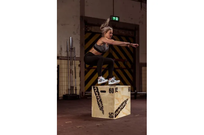 Plyometrickú debnu drevenú TUNTURI Plyo Box je možné využívať pri tréningu zo všetkých strán. Vďaka špeciálnemu vystuženiu má táto debna garantovanú životnosť aj pripravidelnom tréningu a nemala by tak chýbať v žiadnej crossfitovej teločvične či funkčnej zóne veľkých fitness centier.