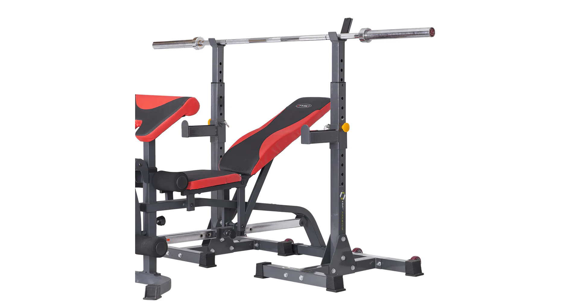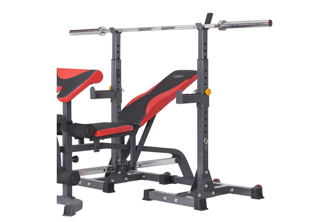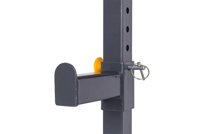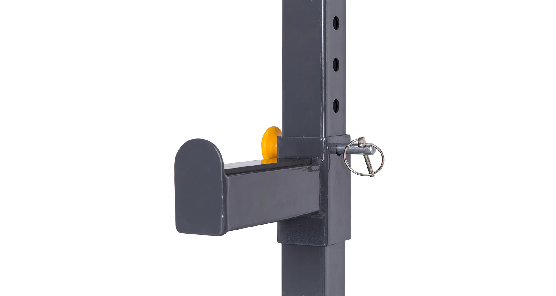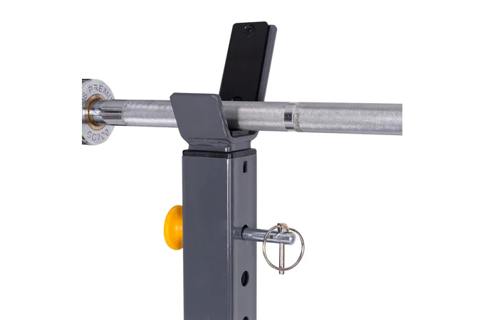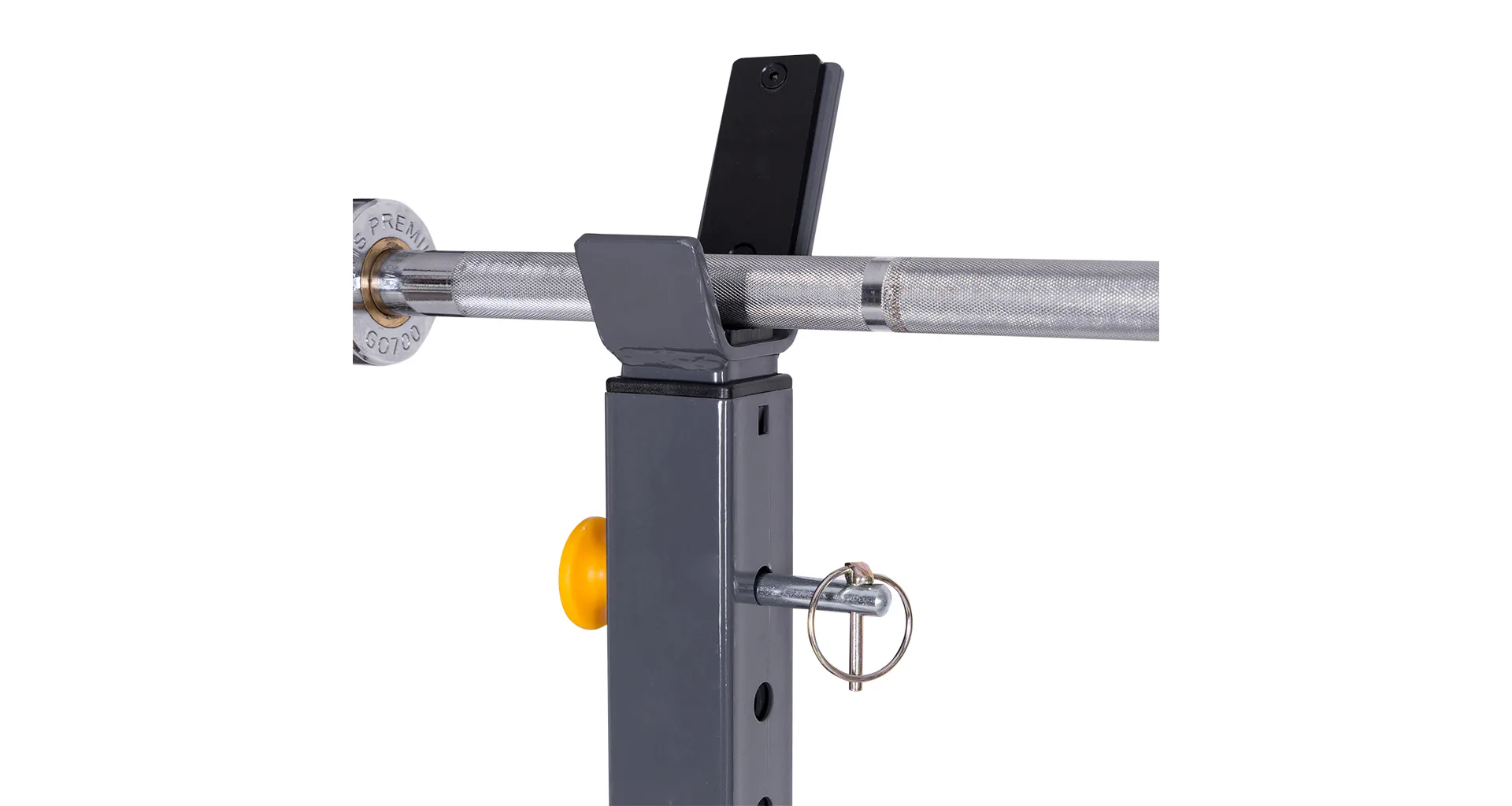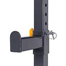 Stojany majú ďalej v základnej výbave aj 21 cm dlhé istiace tŕne pre tréning s lavičkou. Tie je možné na stojan ukotviť vo výške 48 – 93 cm. Navyše sú odkladacie plochy pre činku opatrené gumoplastovými pásikmi pre väčšiu bezpečnosť a to ako používateľa, tak aj používaného náradia. Výšku istiacich tŕňov alebo stojanov nastavíte veľmi jednoducho vďaka kolíkom s poistnou závlačkou. Pre pohodlné premiestnenie stojanov, sú oba vybavené transportnými kolieskami.