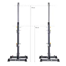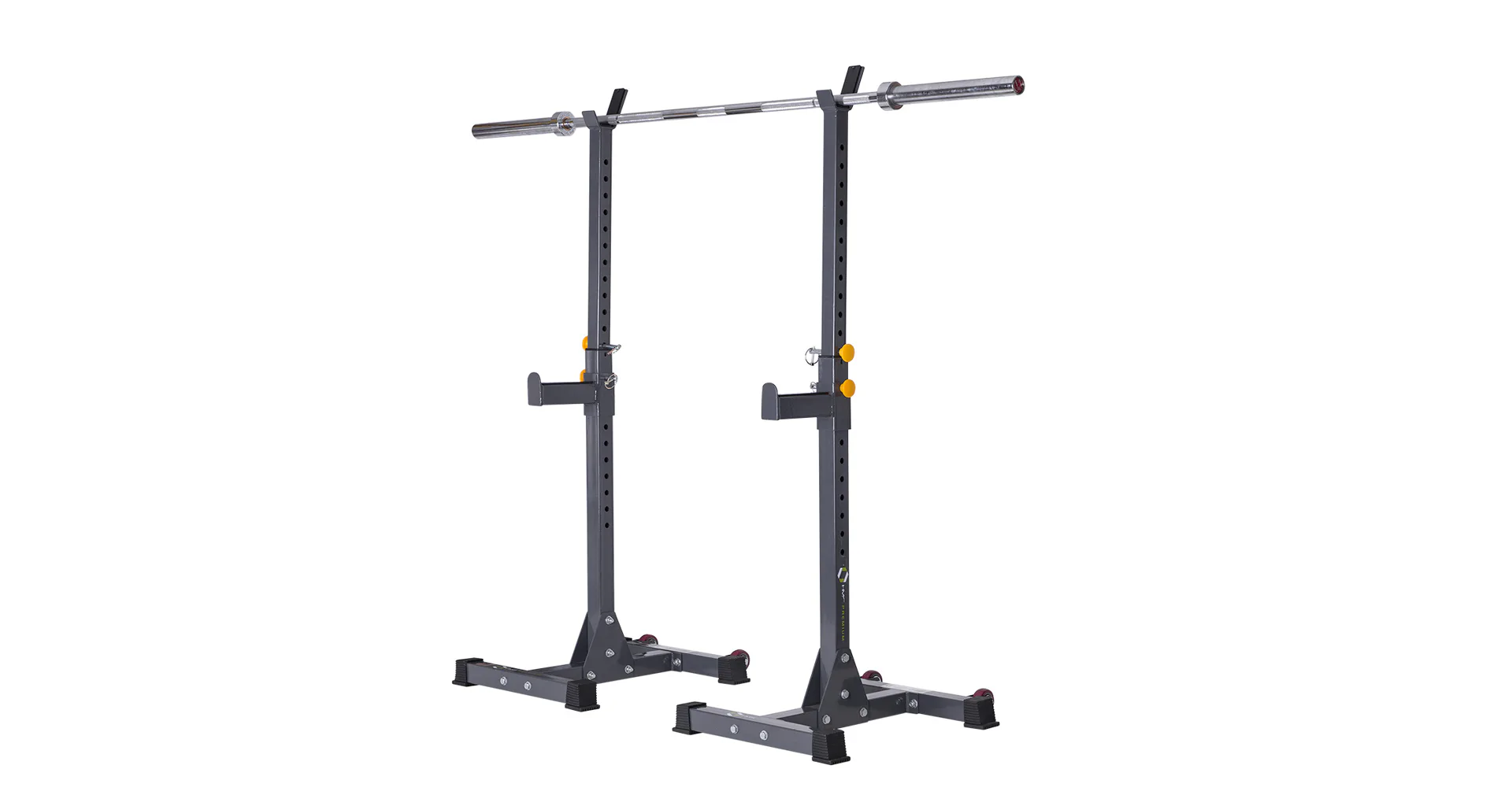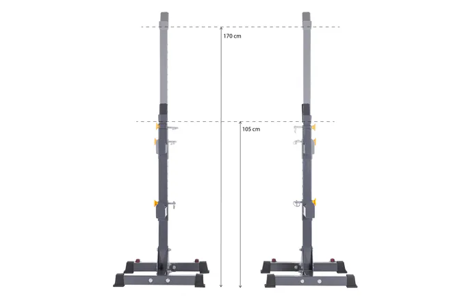 Veľkou výhodou stojanov je ich variabilita či už vo výške, kedy je možné využiť rozpätie od 105 do 170 cm alebo aj v šírke, kedy je možné stojany využiť v podstatne na všetky dĺžky veľkých činkových osí. Stojany sú vyrobené z kvalitnej ocele a unesú až 400 kg záťaž.