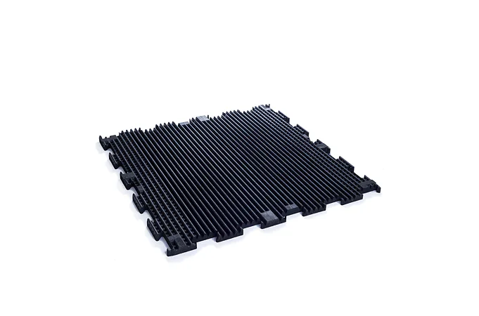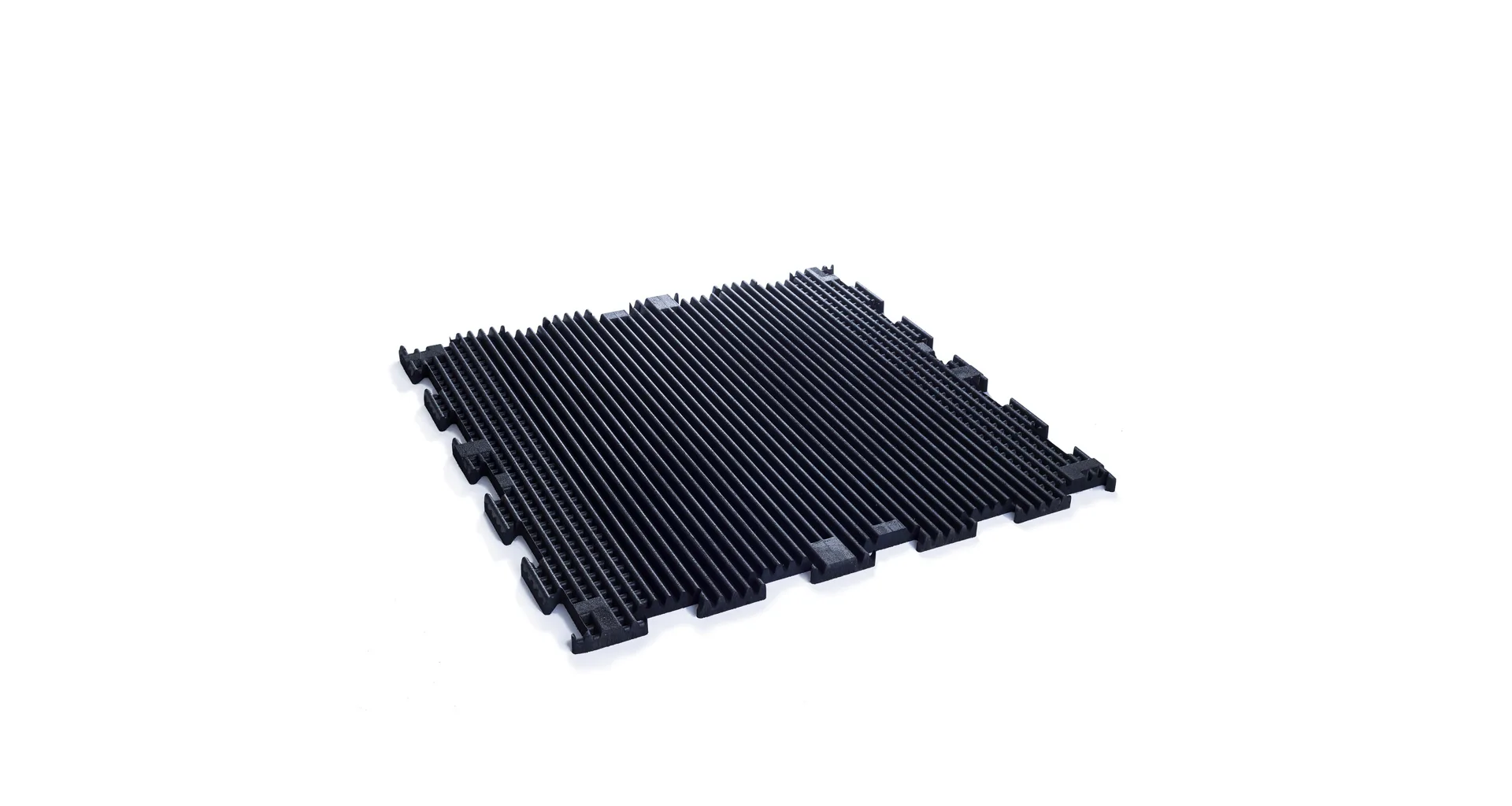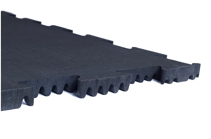 Jednoduchá montáž podlahy bez nutnosti celoplošného lepenia k podkladu vďaka vysokej váhe dosiek. Jednotlivé dosky majú rozmer 100 x 100 cm a vďaka veľmi presnému spracovania je možné ľahko prikladať k sebe na tesno. Vysoká objemová hmotnosť, jednoduchá údržba, hrúbka 30 mm. Pokládku podlahy môžete vykonať svojpomocne, prípadne vieme zabezpečiť jej montáž na mieru. Vďaka zdravotnej nezávadnosti možno využiť aj na detských ihriskách.