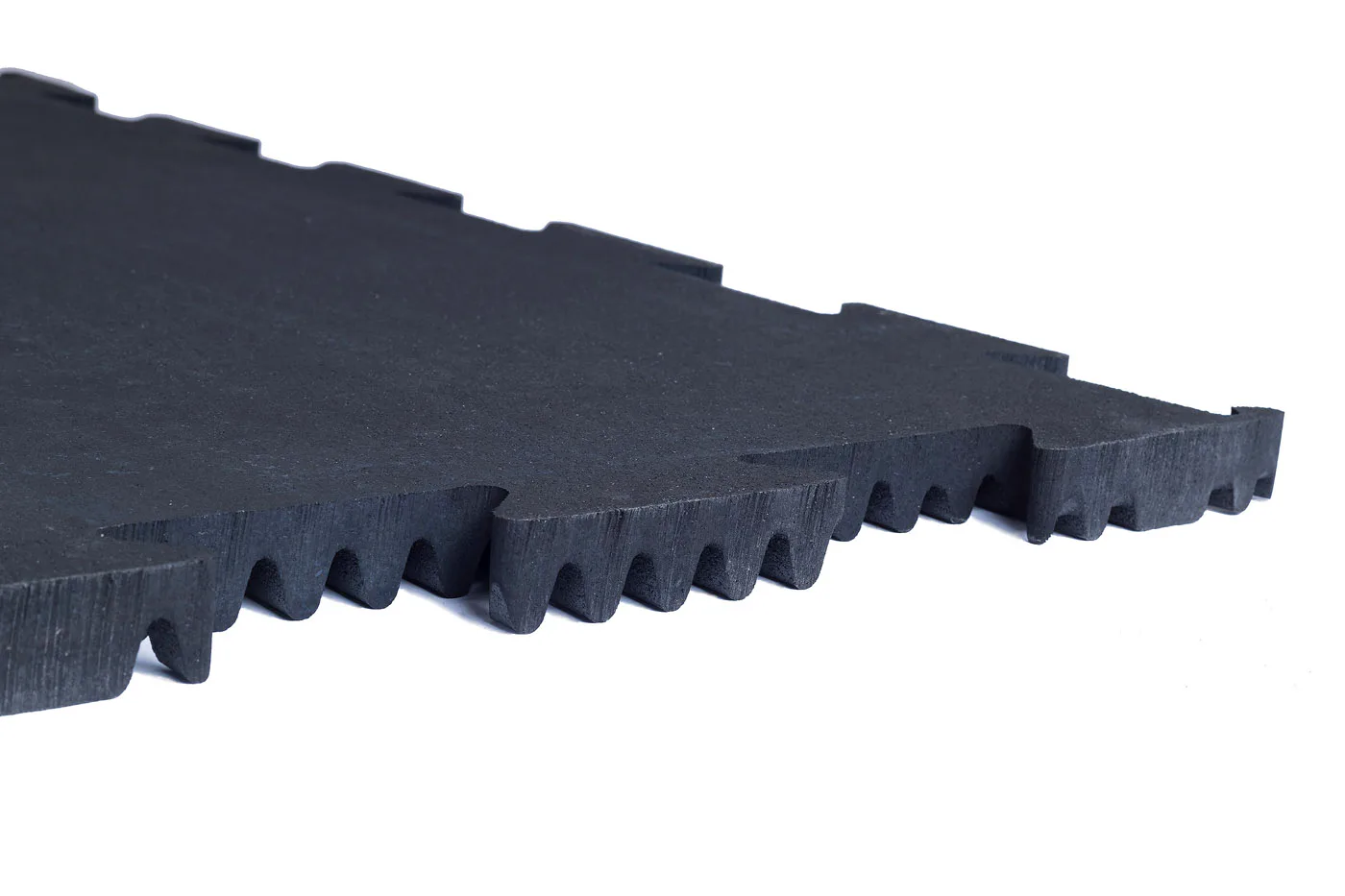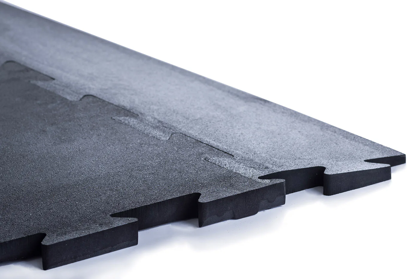 Profesionálna fitness podlaha na crossfit a odhadzovanie činiek vo forme PUZZLE je určená pre nasadenie v profesionálnych crossfitových centrách, posilňovniach, činkových zónach a iných športoviskách. Podlaha je optimálne tvrdá, extrémne odolná a vďaka svojej výške skvele tlmí nárazy, chráni podkladovú vrstvu a izoluje hluk. Povrch nekĺže ale umožňuje pritom dynamický pohyb pri cvičení.