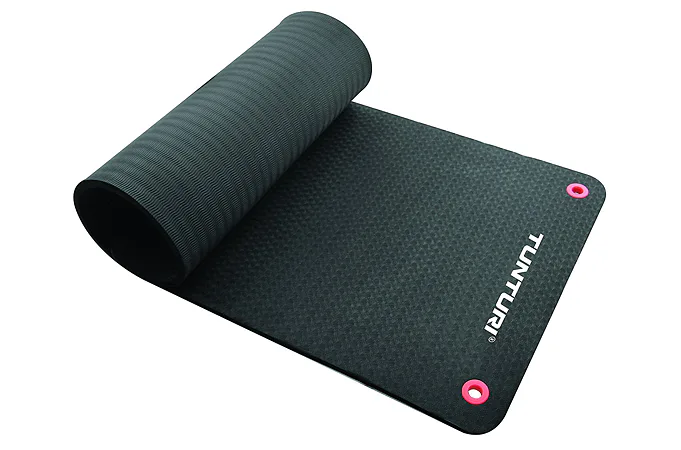 Podložka na cvičenie PROFI 180 cm TUNTURI je veľmi kvalitná podložka vyrobená zo 100% TPE materiálu určená na profesionálne použitie doma aj v posilňovniach. Vďaka špeciálnej 15 mm širokej pamäťovej pene a vysokému komfortu je podložka určená aj pre náročné a pravidelne opakujúce sa cvičenia. Veľmi praktické na skladovanie sú očká, na ktorých môže byť táto aeróbna podložka zavesená po použití. Podložka má dlhodobú životnosť, ale je tiež antibakteriálna, ekologicky šetrná a 100% recyklovateľná.