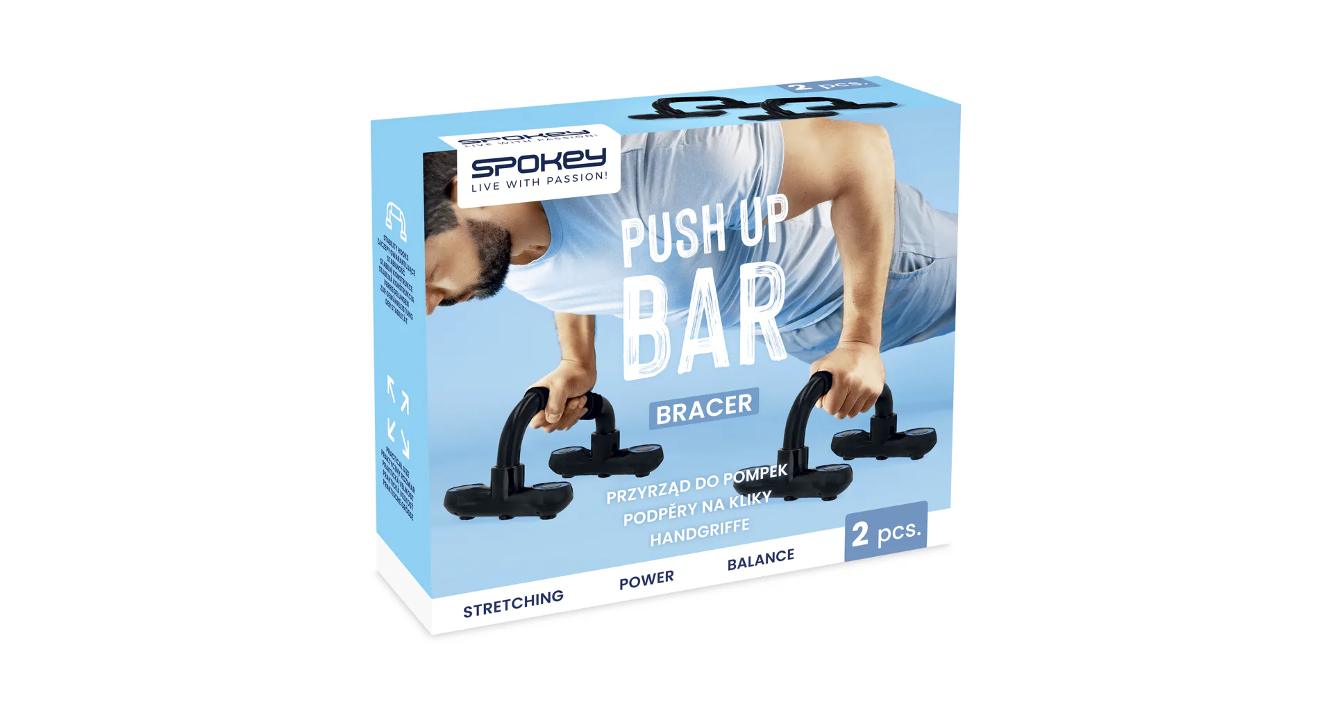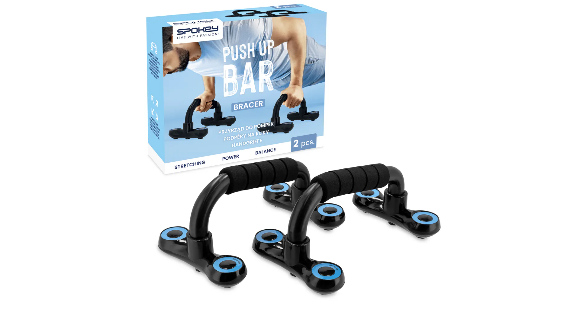 Podpery na kľuky Spokey BRACER sú navrhnuté na zlepšenie cvičenia zameraného na hornú časť tela, konkrétne ramená, hrudník a paže. Umožňujú hlbšie kľuky, čím zvyšujú zapojenie svalov, najmä v oblasti hrudníka a tricepsov. Ergonomické, mäkké rukoväte zabezpečujú pohodlie počas cvičenia. Podpery sú vyrobené z lakovaného kovu s plastovými základňami pre stabilitu a odolnosť.