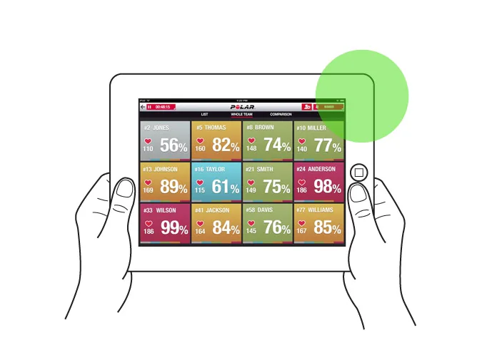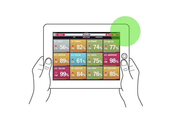 Aplikácia inštalovaná do mobilného zariadenia (musí ísť o vybrané typy iPadu, iOS min. 8), umožňuje aktuálne sledovanie každého prihláseného jedinca k aplikácii. Tréner tak môže sledovať do akej miery každý z tímu pracuje. Tieto informácie poslúžia pre ďalšie možnosti vedenia tréningu.