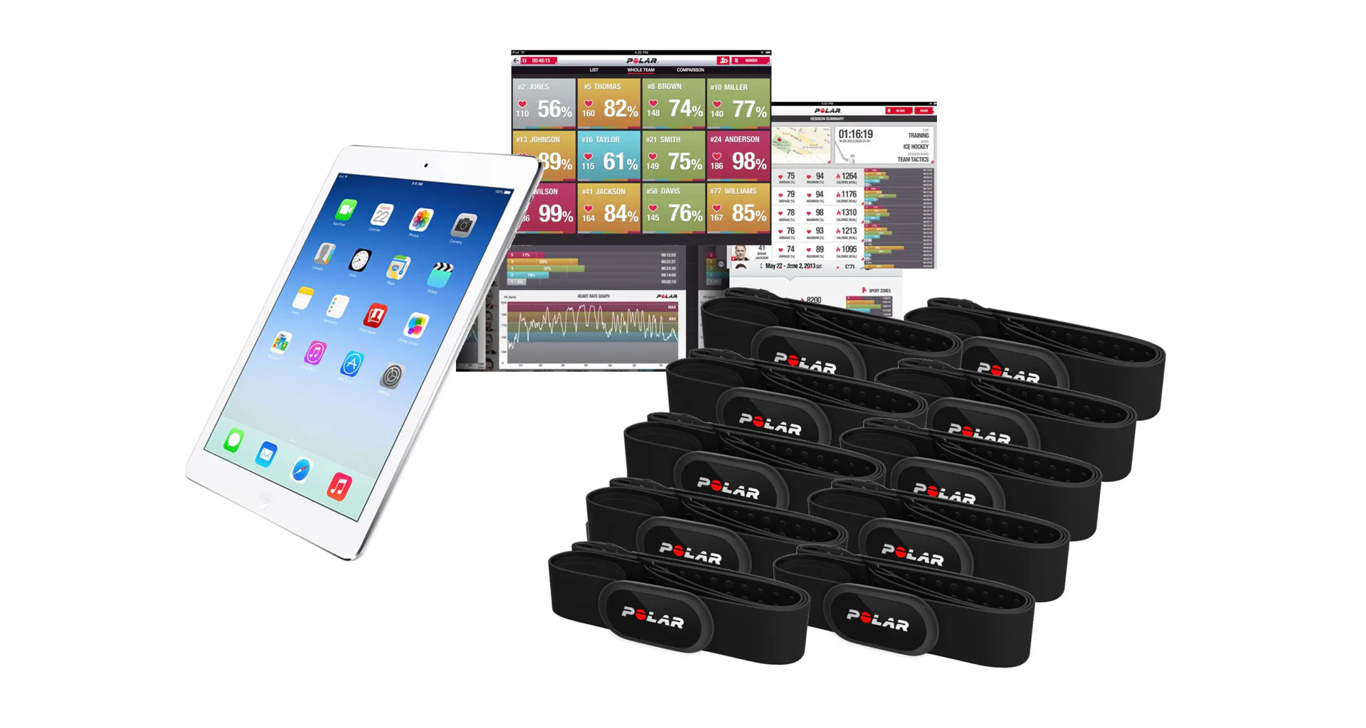 1 x tablet Apple iPad (aplikácia je aktívna iba vo vybraných zariadeniach zn. Apple, nie je teda možné využívať iná napríklad s o.s. Android), v rámci dodania je už nainštalovaná aplikácia Polar Team – Indoor team sport coach, verzia 1.0.6.