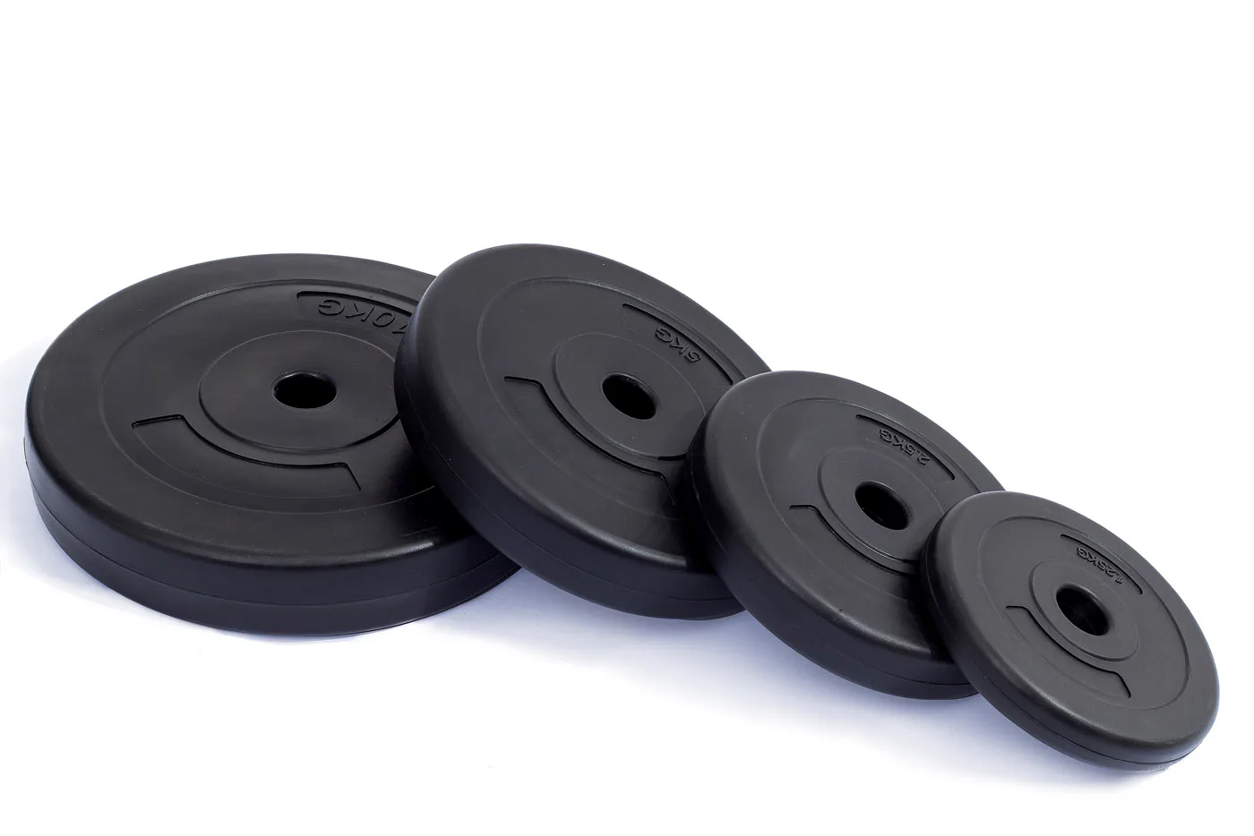 Poplastované cementové kotúče s odolným povrchom sú lacnejšou alternatívou klasických oceľových kotúčov. Jedná sa o moderné závažie s vŕtaním 30 mm určené pre veľké aj jednoručné činky, využiteľné aj ako záťaž pre posilňovacie lavice a stroje, ktorých výhodou je nižšia cena. Nevýhodou pre osoby cvičiace s vyššími váhami môže byť väčšia veľkosť kotúčov v porovnaní s oceľovým kotúčom, čo je dané menšou objemovou hmotnosťou cementovej výplne oproti železu.