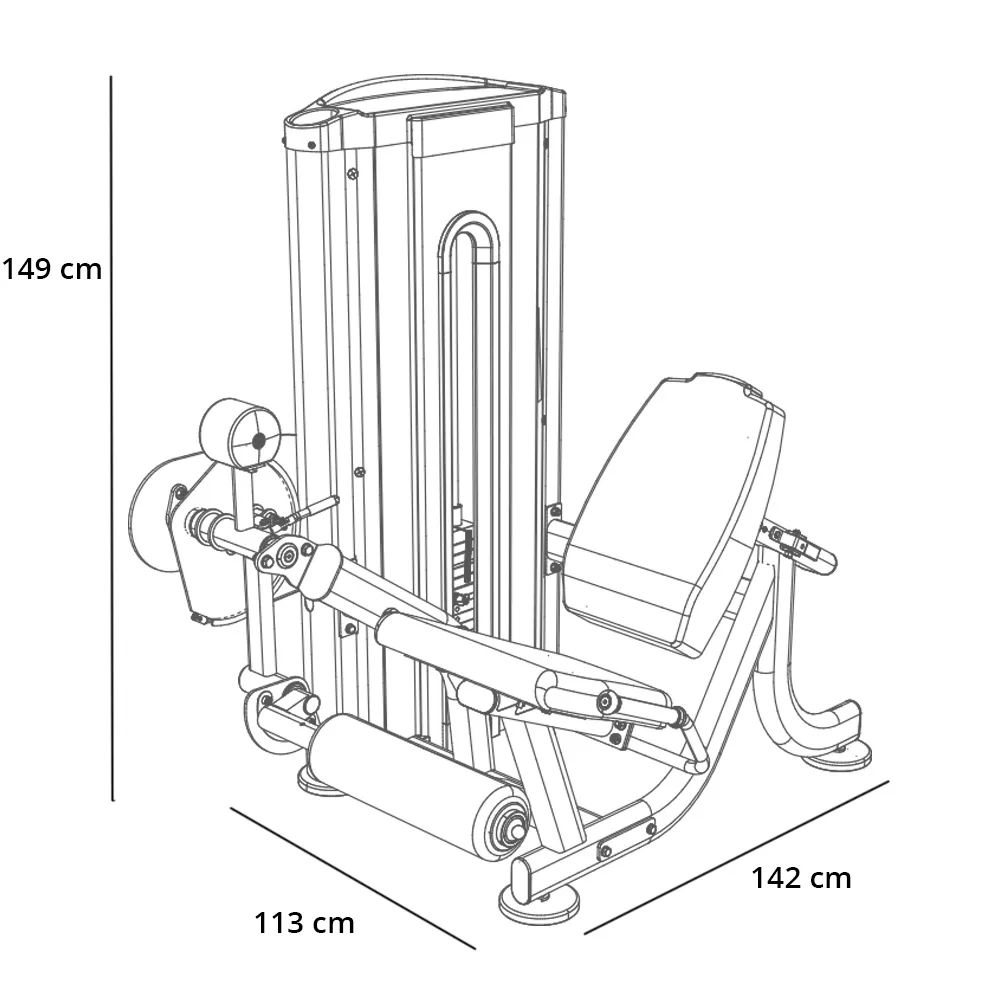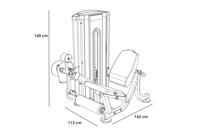 Posilovač stehen BH Fitness L010 Leg Extension se rozkládá na půdorysu o rozměrech (d x š x v) 142 cm, 113 cm a 149 cm, nezabere vám tedy moc prostoru a stále zůstane dostatek místa i na další stroje.