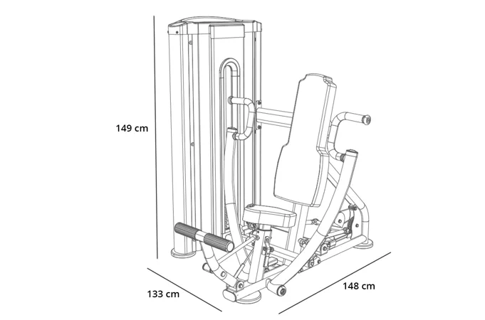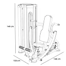 Posilovač prsou L070 se rozkládá na malém půdorysu o rozměrech (d x š x v) 148 cm, 133 cm a 149 cm, nezabere vám tedy moc prostoru a stále zůstane dostatek místa i na další stroje.