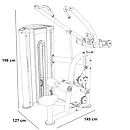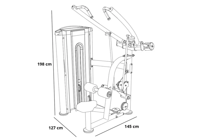 Horní kladka L110 se rozkládá na malém půdorysu o rozměrech (d x š x v) 145 cm, 127 cm a 198 cm, nezabere vám tedy moc prostoru a stále zůstane dostatek místa i na další stroje.