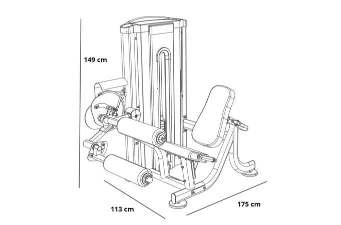 Posilovač stehen L170 se rozkládá na malém půdorysu o rozměrech (d x š x v) 175 cm, 113 cm a 149 cm, nezabere vám tedy moc prostoru a stále zůstane dostatek místa i na další stroje.